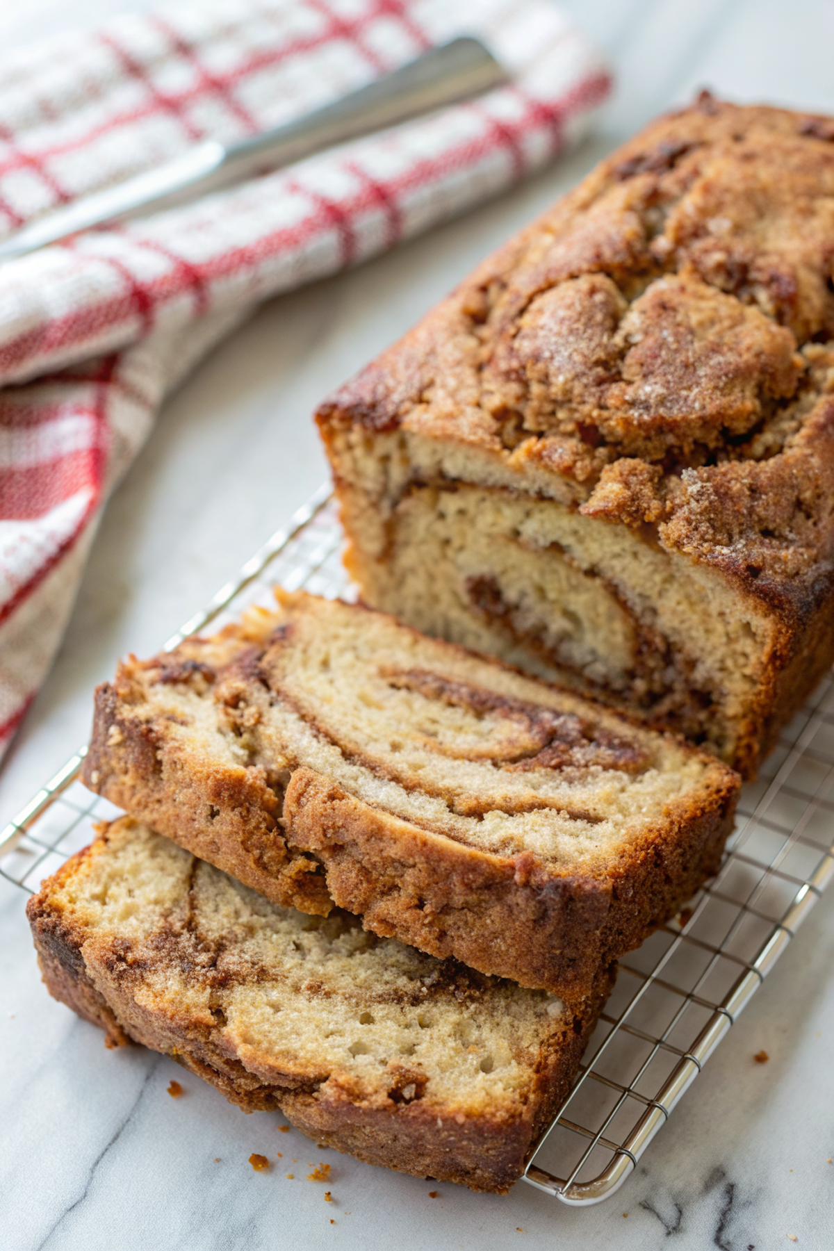 This recipe is the kind of thing that encouraged me to stop stress-baking. I once tried to jazz it up by adding five different spices and a splash of something weird—big mistake. The simple cinnamon-sugar ribbon is the point. I also learned that adding the swirl too early will make it sink; swirl after you’ve got the batter in the pan. And don’t skip the glaze unless you want a loaf that looks sad. The glaze makes it feel like a hug.