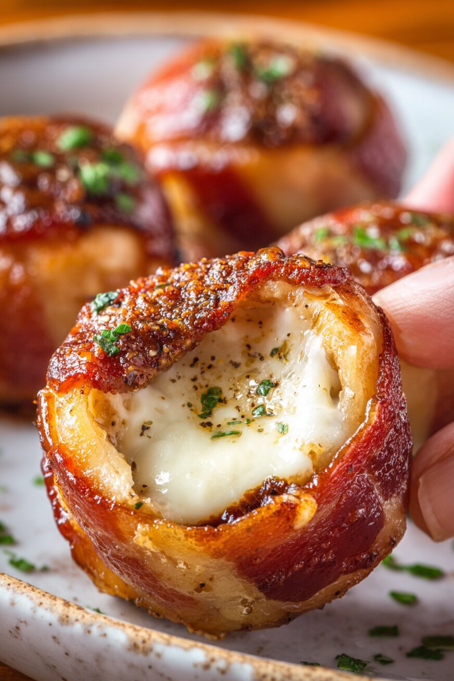 – Crispy bacon exterior with a molten, cheesy center — texture heaven.