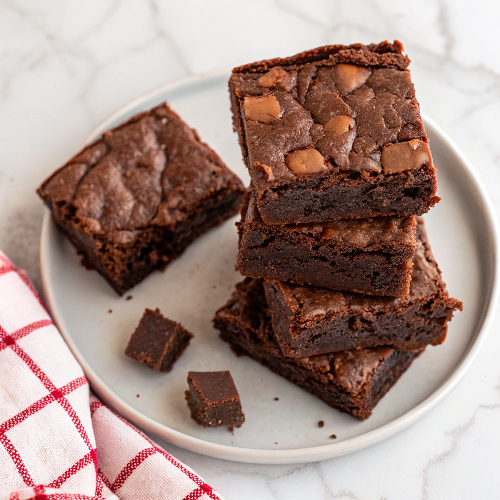 Keep leftovers in an airtight container at room temp for 2–3 days, or refrigerate up to a week. Want them fudgier? Warm a slice for 10 seconds in the microwave. Cold brownies are totally acceptable for breakfast — coffee + brownie = adult cereal, no judgment here. For longer storage, freeze wrapped brownies for up to 3 months and thaw at room temp.