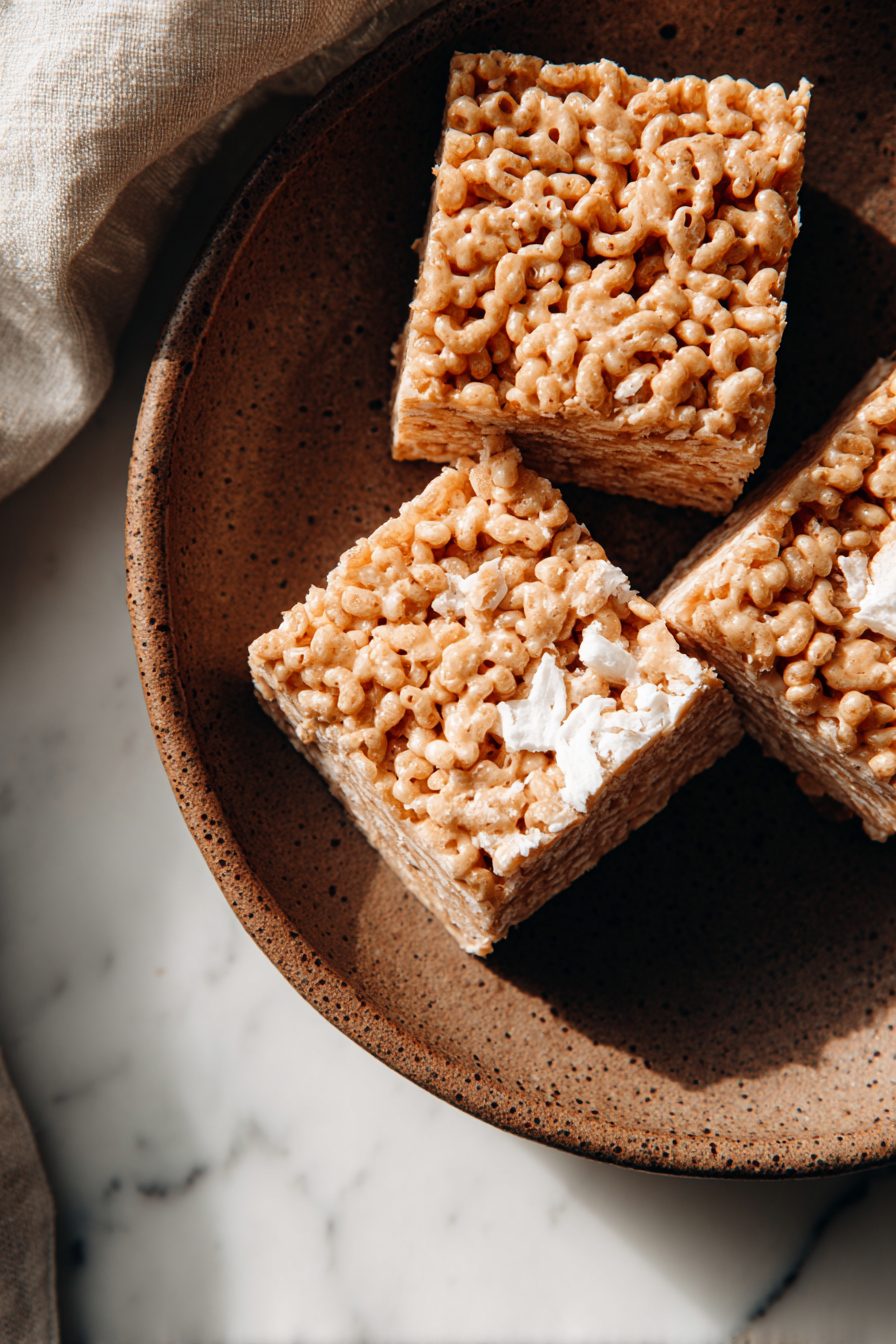 Keep these in an airtight container at room temperature for a few days; they’ll stay soft and chewy. If you refrigerate, they firm up and are great cold (no judgment—cold rice krispie treats are a breakfast energy boost in my house). If they lose crunch, a few minutes in a warm oven will perk them back up.