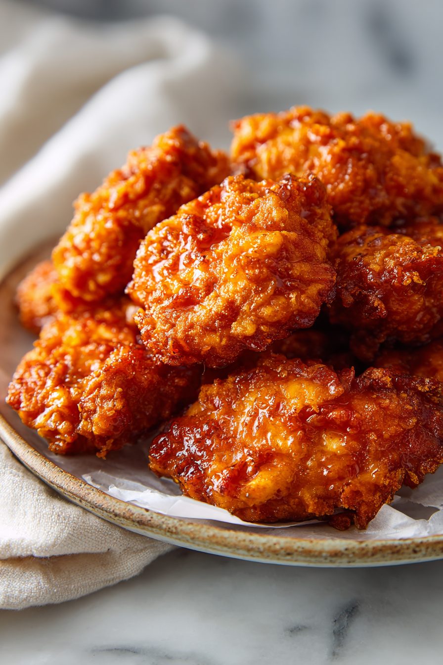 I’ll be honest: I burned a batch once because I got distracted scrolling through a very important meme. Lesson learned — set a timer. Also, if you’re shallow-frying, don’t overcrowd the pan or the crust goes soggy. I once made these with boneless skin-on thighs because I forgot to defrost breasts; the extra fat made them shockingly addicting. And if you’re coating the bites, toss them in the sauce right when they come off the heat so the hot crust soaks a little — just enough to cling, not so much that they go limp.