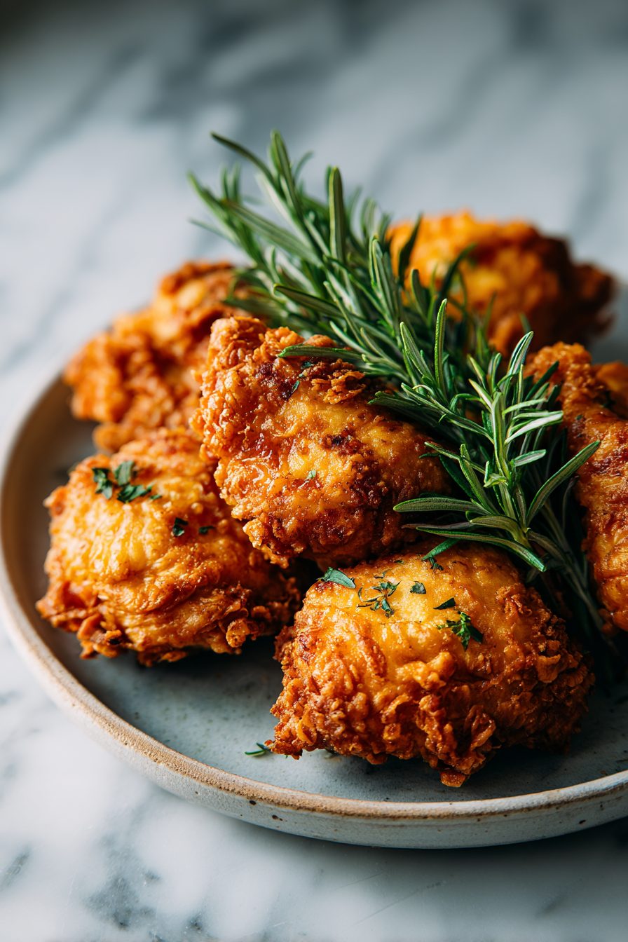 – Protein: Go for bone-in, skin-on thighs and drumsticks for max juiciness and easy frying. If you use breasts, pick smaller ones so they cook through before the crust overbrowns.