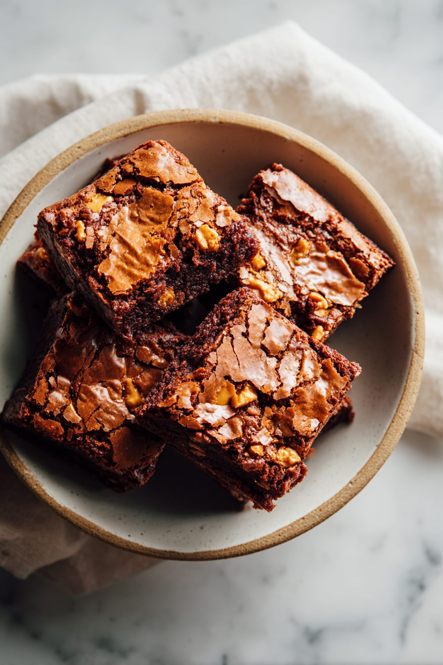 These brownies are exactly what happens when chocolate-y, fudgy brownie obsession meets buttery, caramel-y butterscotch chips — a little deep, a little sweet, dangerously easy to eat straight from the pan. They’re dense and chewy with pockets of melt-in-your-mouth butterscotch and a crackly top that makes your teeth happy. Try them because they’re forgiving, travel well to potlucks, and because yes, they taste like tiny bites of toffee heaven.