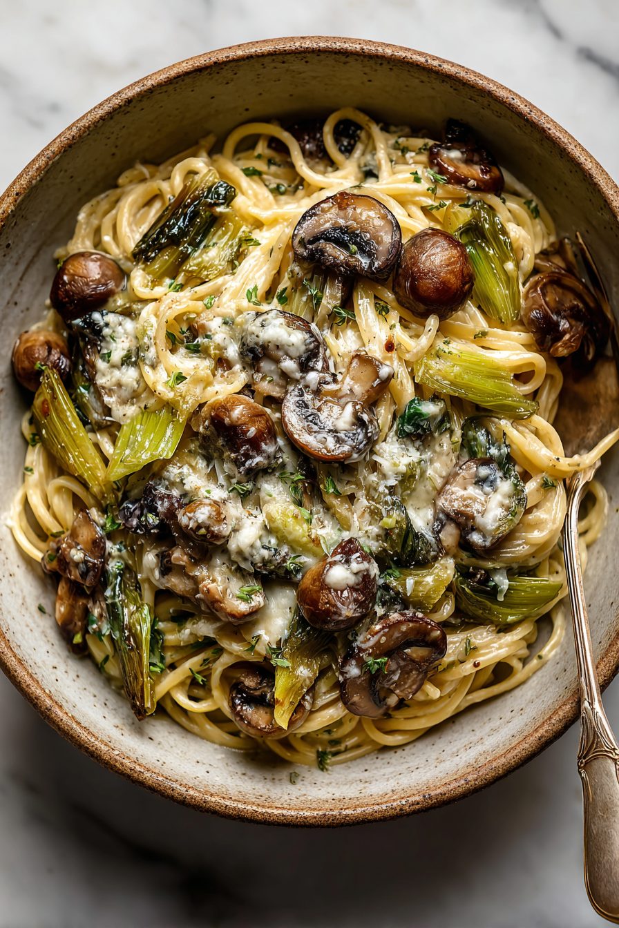This pasta feels like a cozy Friday-night hug: sweet, deeply caramelized leeks, juicy mushrooms browned to edges, and a gooey hit of Gruyère folded through warm pasta so everything clings together in the best, slightly cheesy mess. It’s a little fancy and totally forgiving — great for company, better for nights when you just need something comforting that still tastes like you tried.