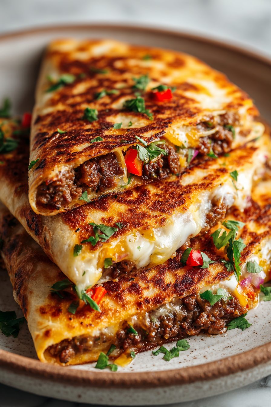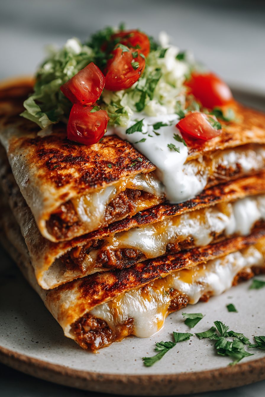 Ground turkey or chicken works if you want lighter; plant-based crumbles are great too and take the same seasoning. Swap cheddar for pepper jack for heat, or add diced pickles inside if you like that classic burger tang. No tortillas? Serve deconstructed as a cheeseburger bowl over lettuce or rice. Don’t expect delicate flavors here — bold and loud is the point.