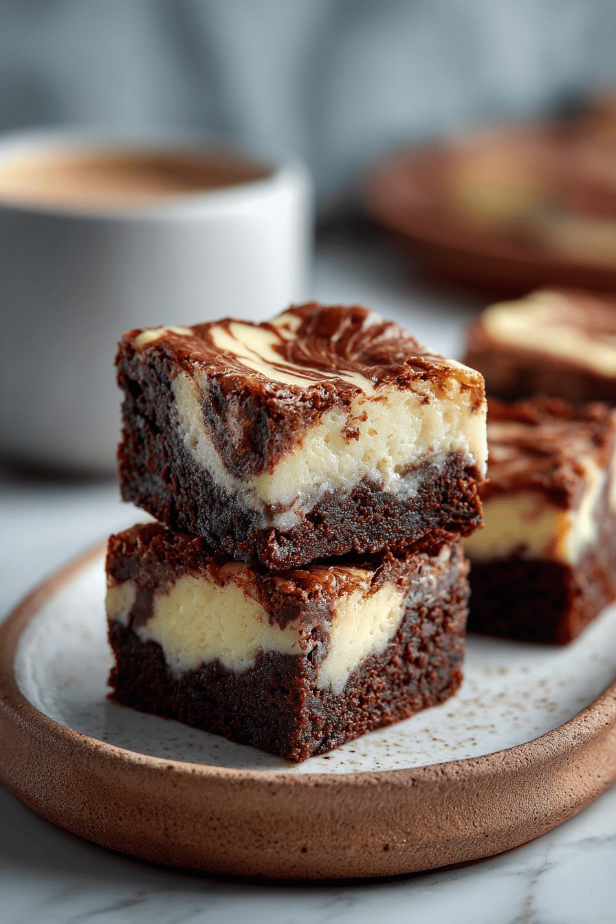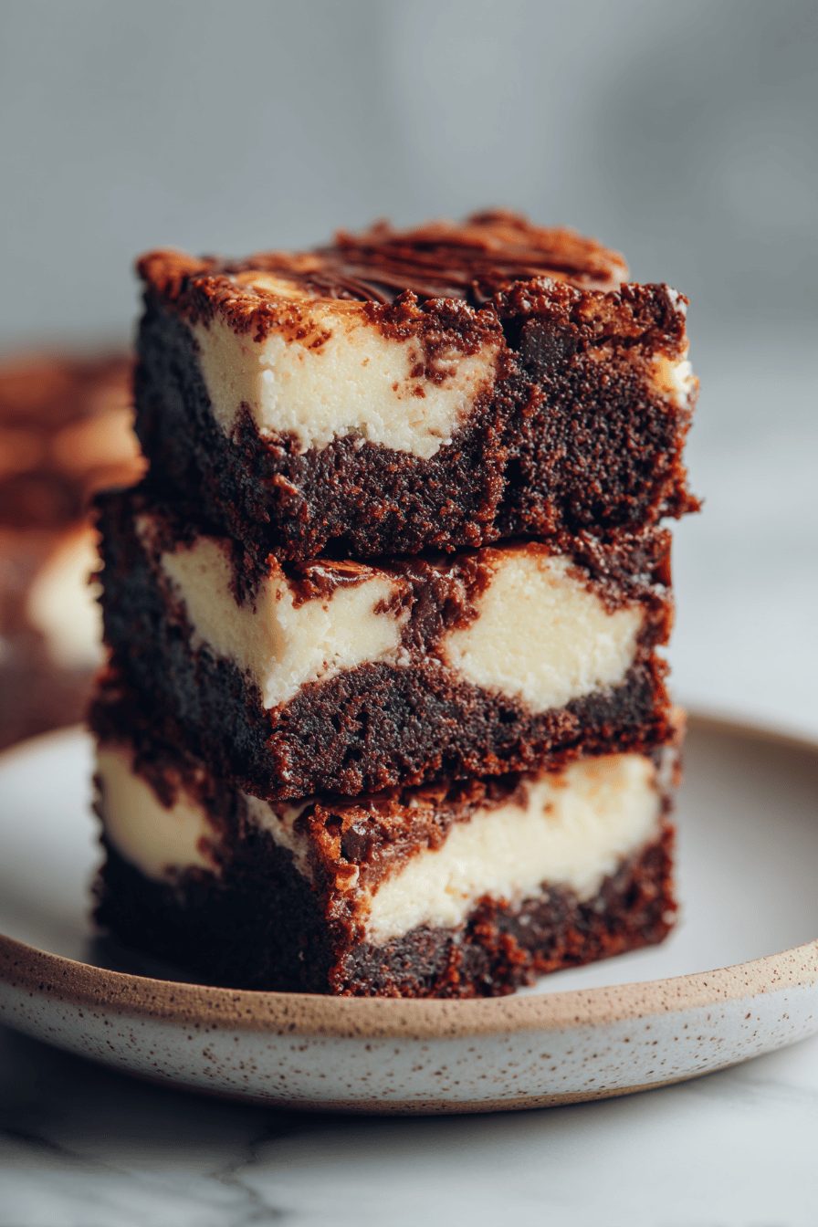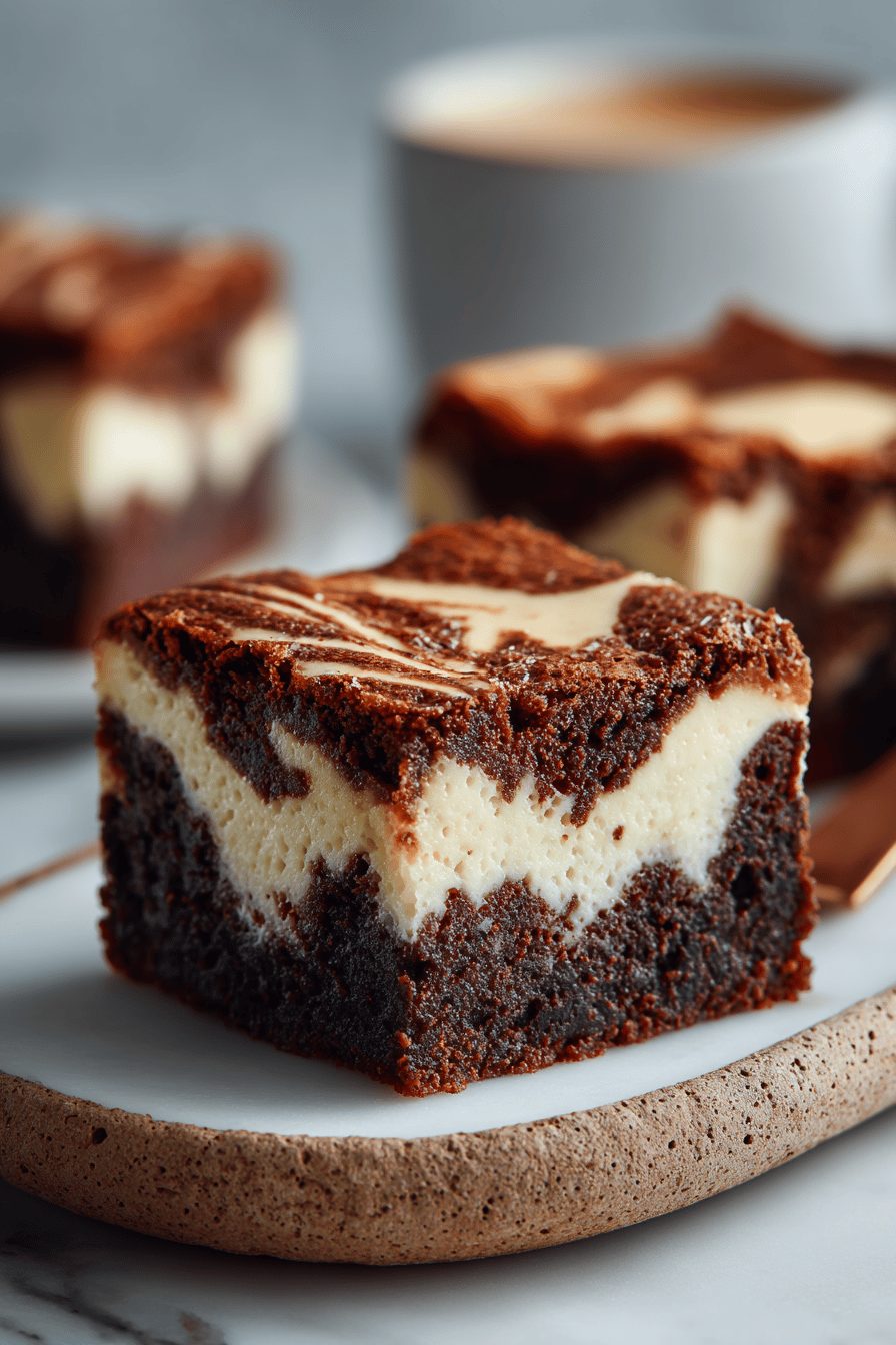 I will be honest: my first attempt was a glorious mess. I overmixed the cheesecake layer and it sank like a sad little pancake. Now I gently fold, swirl with a butter knife, and stop obsessing. Also, parchment paper is a life hack here — it makes lifting the whole slab out to cut into rustic squares so much easier, and fewer fights about who gets the corner piece. Once I tried adding espresso powder to the batter because I had a sleepy midnight craving; the chocolate got deeper and richer — 10/10 recommend if you like that dark roast vibe.