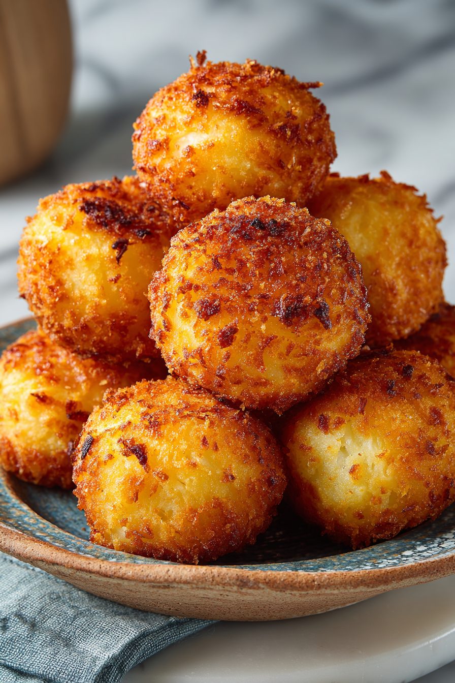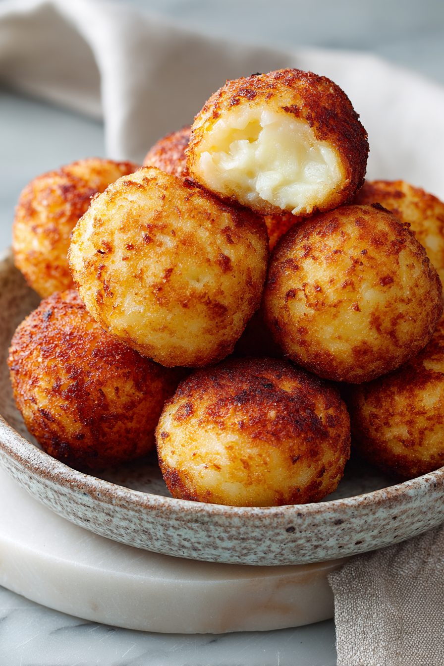 I learned early on that mashed potato texture matters here. Too wet and the balls fall apart; too dry and they’re sadly gritty. There was one night I tried to jazz these up with a ton of herbs and forgot the breadcrumbs — they turned into mushy herb blobs. Then I discovered chilling the formed balls for 20–30 minutes tightens them right up and saves the day. Also: don’t be precious about the cheese. Use what you’ve got — cheddar, mozzarella, pepper jack — all rebels welcome.