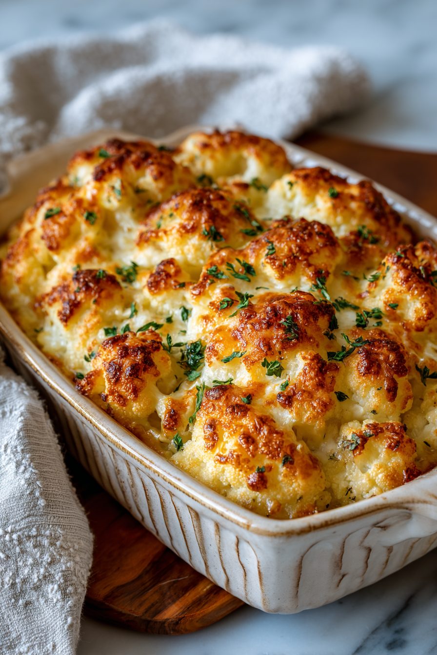 – Low-carb option: keep it the same—cauliflower is already your low-carb hero. Avoid breadcrumbs or use crushed pork rinds for a crisp topping.