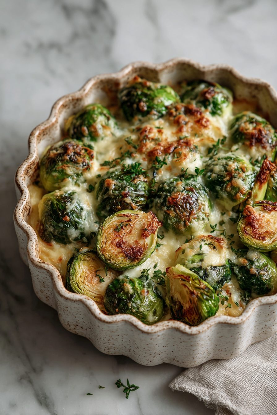 This Cheesy Brussels Sprouts recipe is a game-changer—creamy, cheesy goodness with smoky bacon that makes even sprout skeptics dig in.[2][1] The sauce stays saucy without getting gluey, and it reheats like a dream for holiday leftovers.[2] Total crowd-pleaser and now my go-to side!