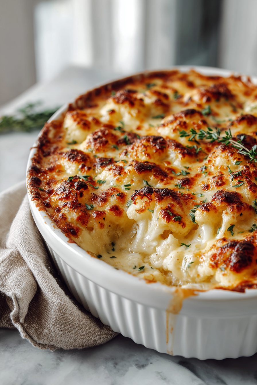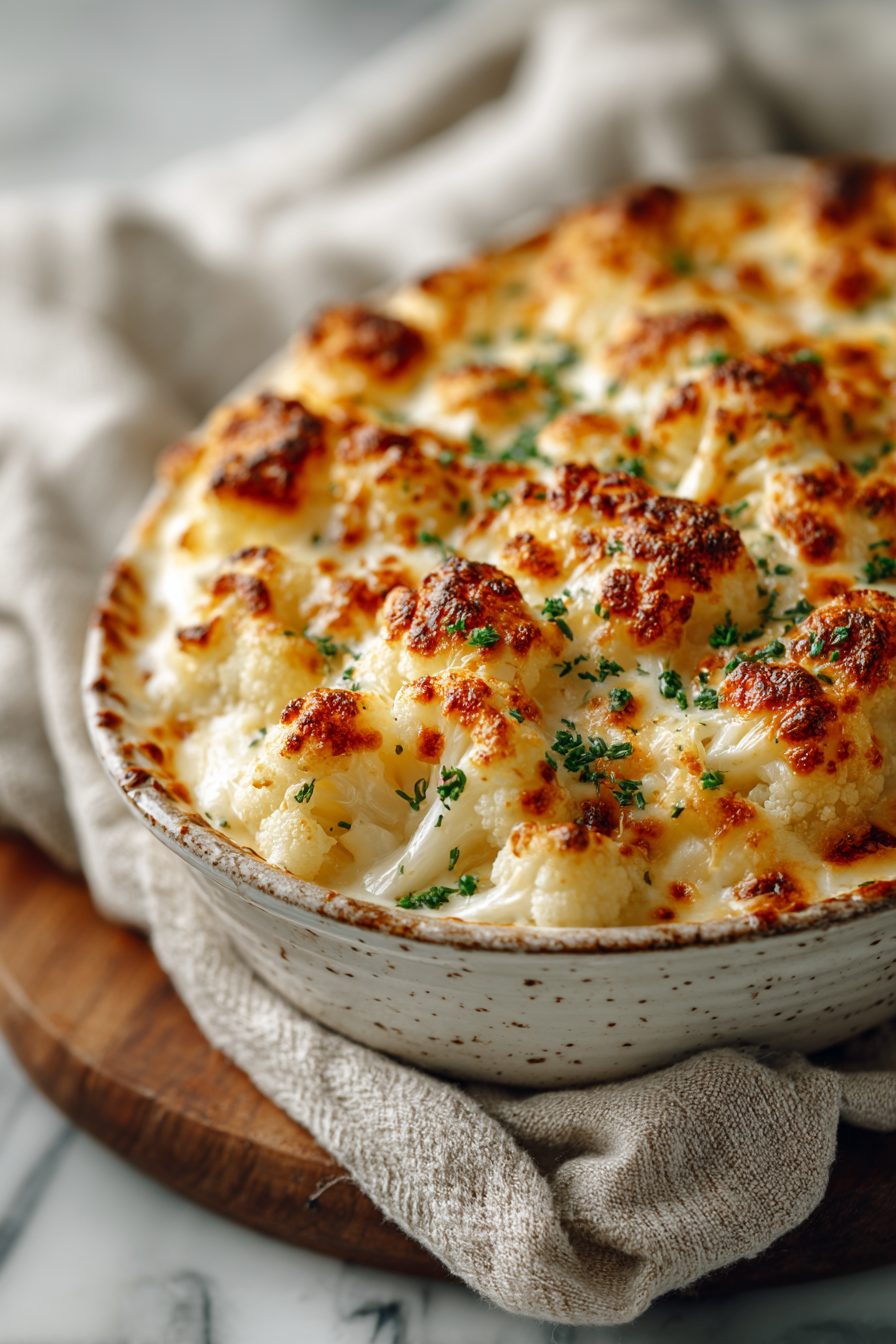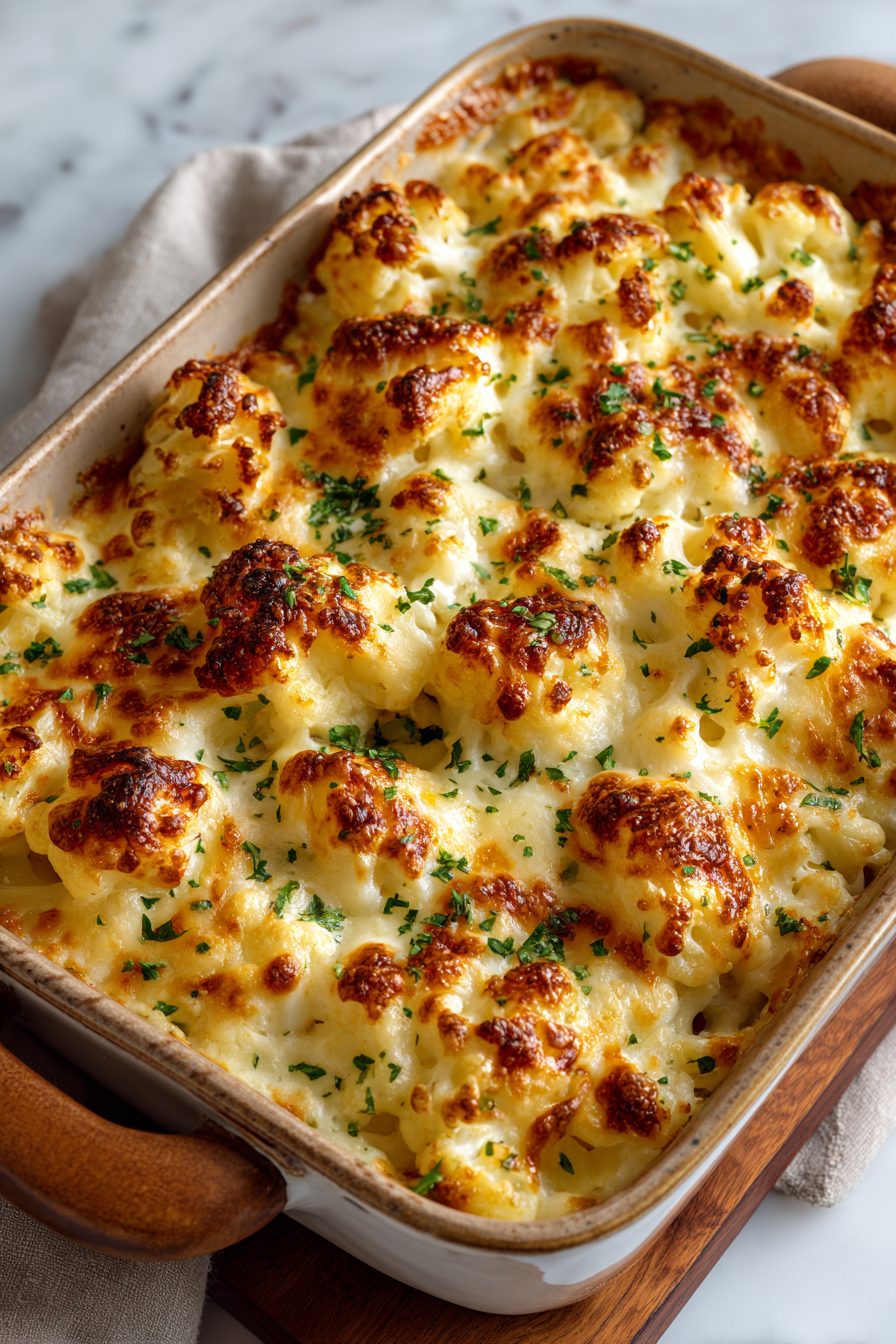 This cauliflower bake is everything I want on a tired weeknight: cozy, cheesy, and somehow fancy-feeling without the fuss. It’s essentially cauliflower florets smothered in a silky alfredo-style sauce, loaded with melty cheese, baked until edges get golden and a little crispy. Comfort food that behaves like it’s trying—perfect for family dinners, for hiding veggies from picky eaters, and for leftovers that reheat like a dream.