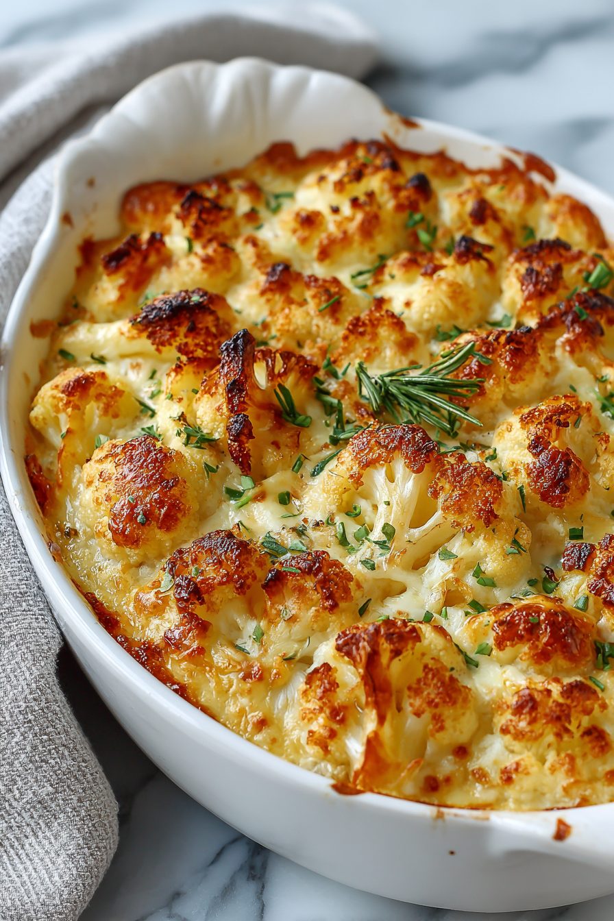 This cauliflower bake is everything I want on a tired weeknight: cozy, cheesy, and somehow fancy-feeling without the fuss. It’s essentially cauliflower florets smothered in a silky alfredo-style sauce, loaded with melty cheese, baked until edges get golden and a little crispy. Comfort food that behaves like it’s trying—perfect for family dinners, for hiding veggies from picky eaters, and for leftovers that reheat like a dream.