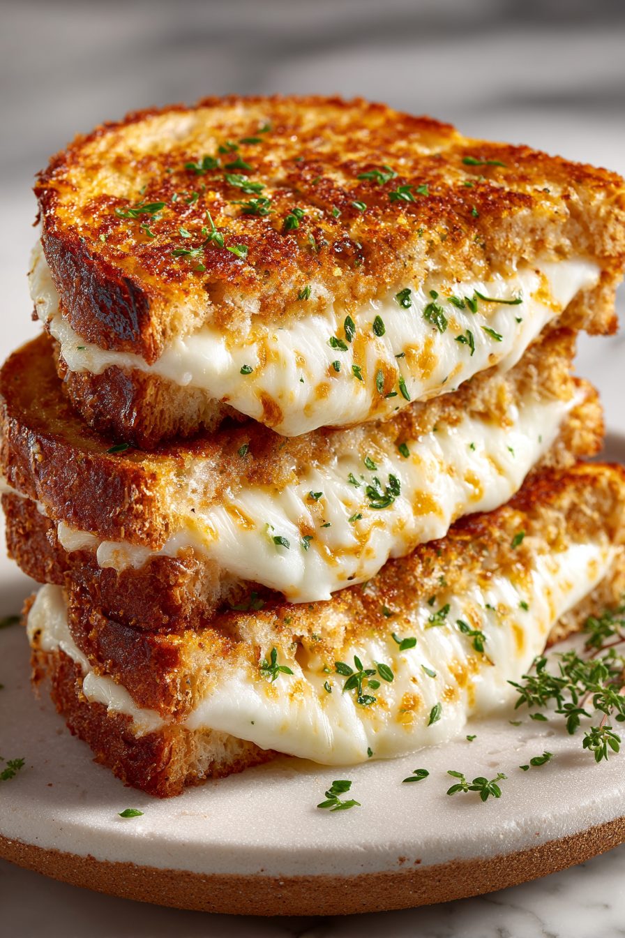 This sandwich is everything my chaotic weeknights and lazy weekends both desperately need: crunchy garlic-toasted bread stuffed with melty cheese, a little herb kick, and maybe a smear of something tangy if I’m feeling fancy. It’s not trying to be haute cuisine — it’s indulgent, loud, and exactly what you want when nothing else will do.