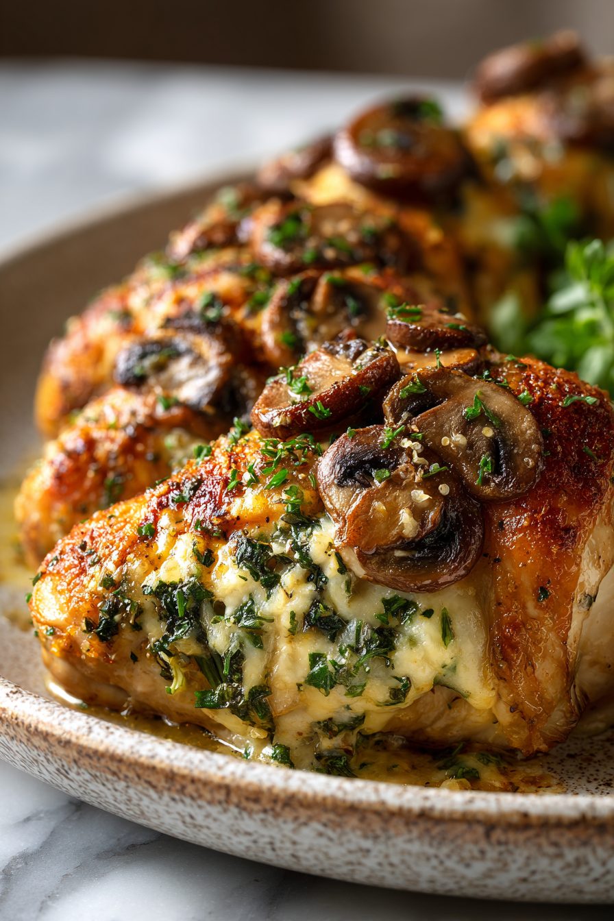 Cheesy Garlic Butter Mushroom Chicken