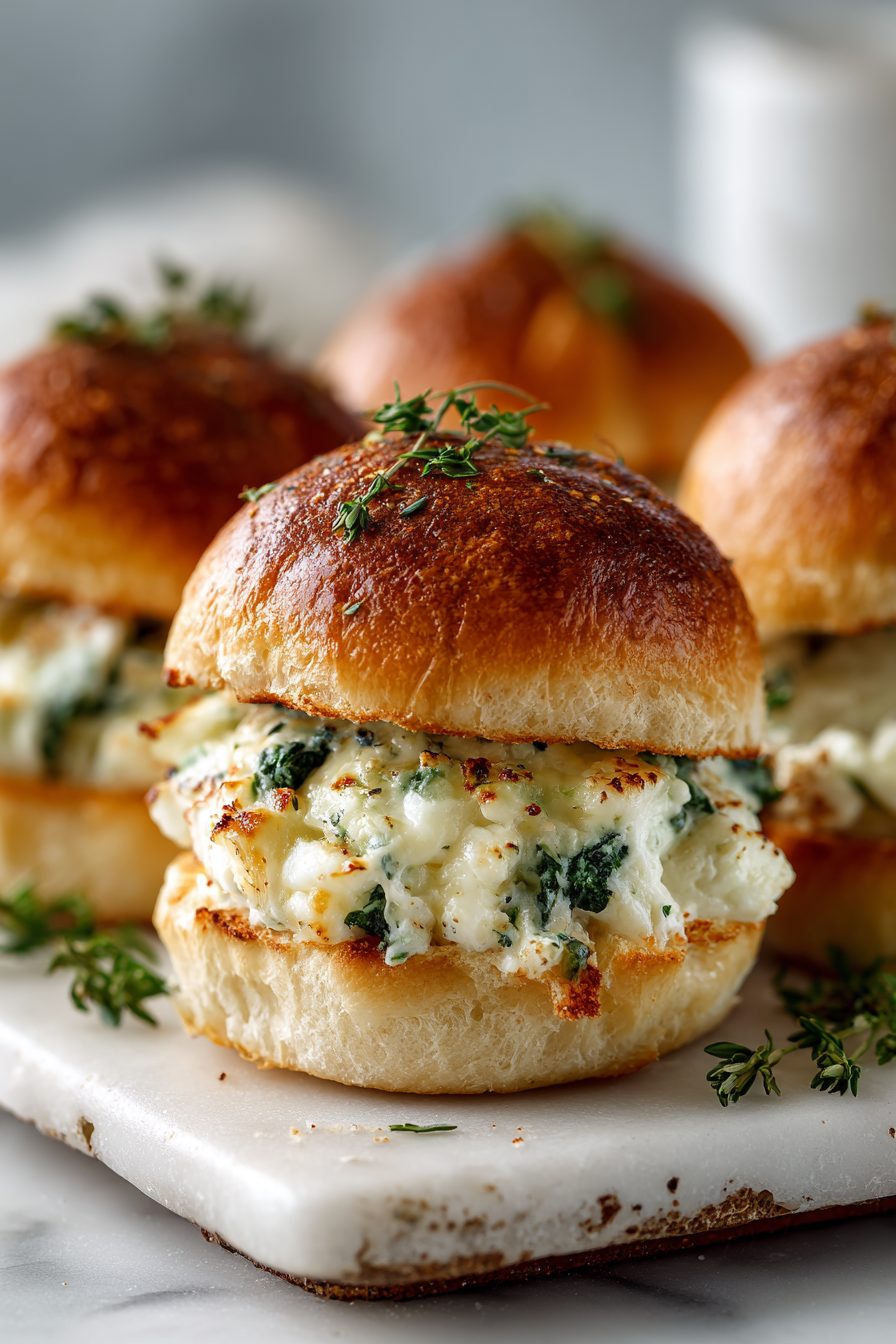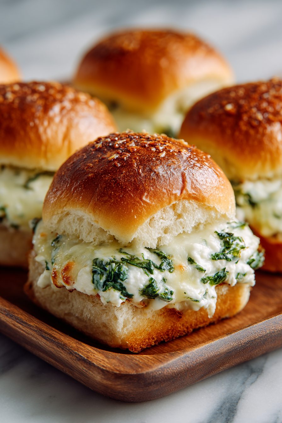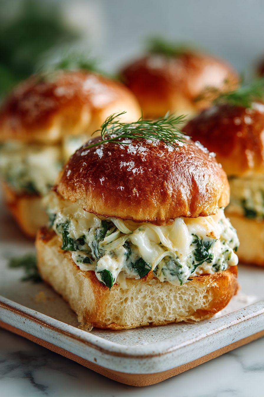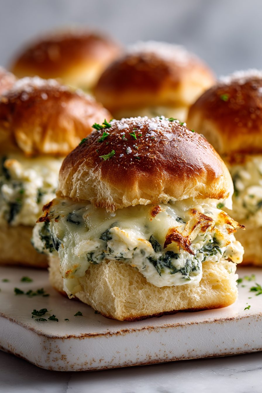 Cheesy Spinach Artichoke Dip Sliders