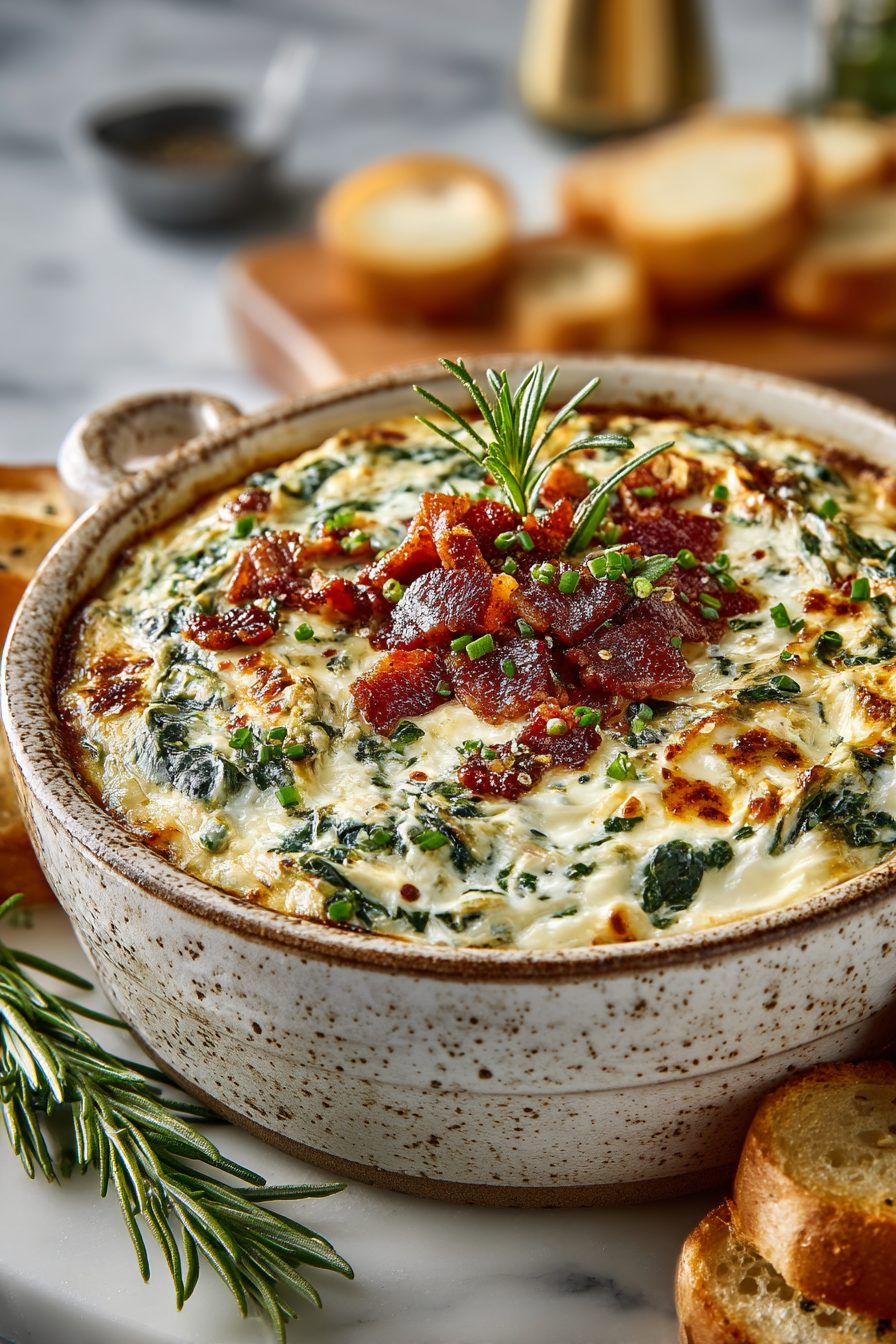 Listen — this dip is forgiving but it has personality. Fresh spinach adds brightness but has more volume and needs patience to wilt; frozen is a lifesaver when you’re distracted by a crying toddler or the fifth episode of whatever we’re watching. I once made this with no salt because I panicked about sodium and it was sad and flat; don’t be me. Also: if you toast the bread cubes too long, you’ll have crouton island in a sea of cheese — slightly less ideal. I’ve swapped in feta and a splash of lemon on a whim and it turned into an entirely new, sharp little showstopper. Embrace the chaos.