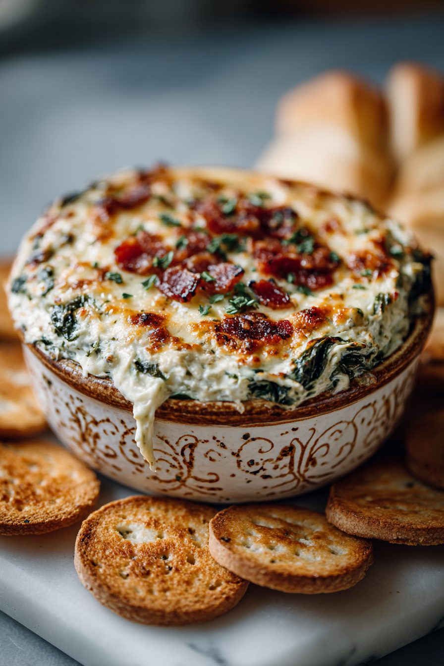 – Adding wet spinach: I once forgot to squeeze frozen spinach and ended up with a runny dip — rescue by stirring in extra shredded cheese and a little more cream cheese.