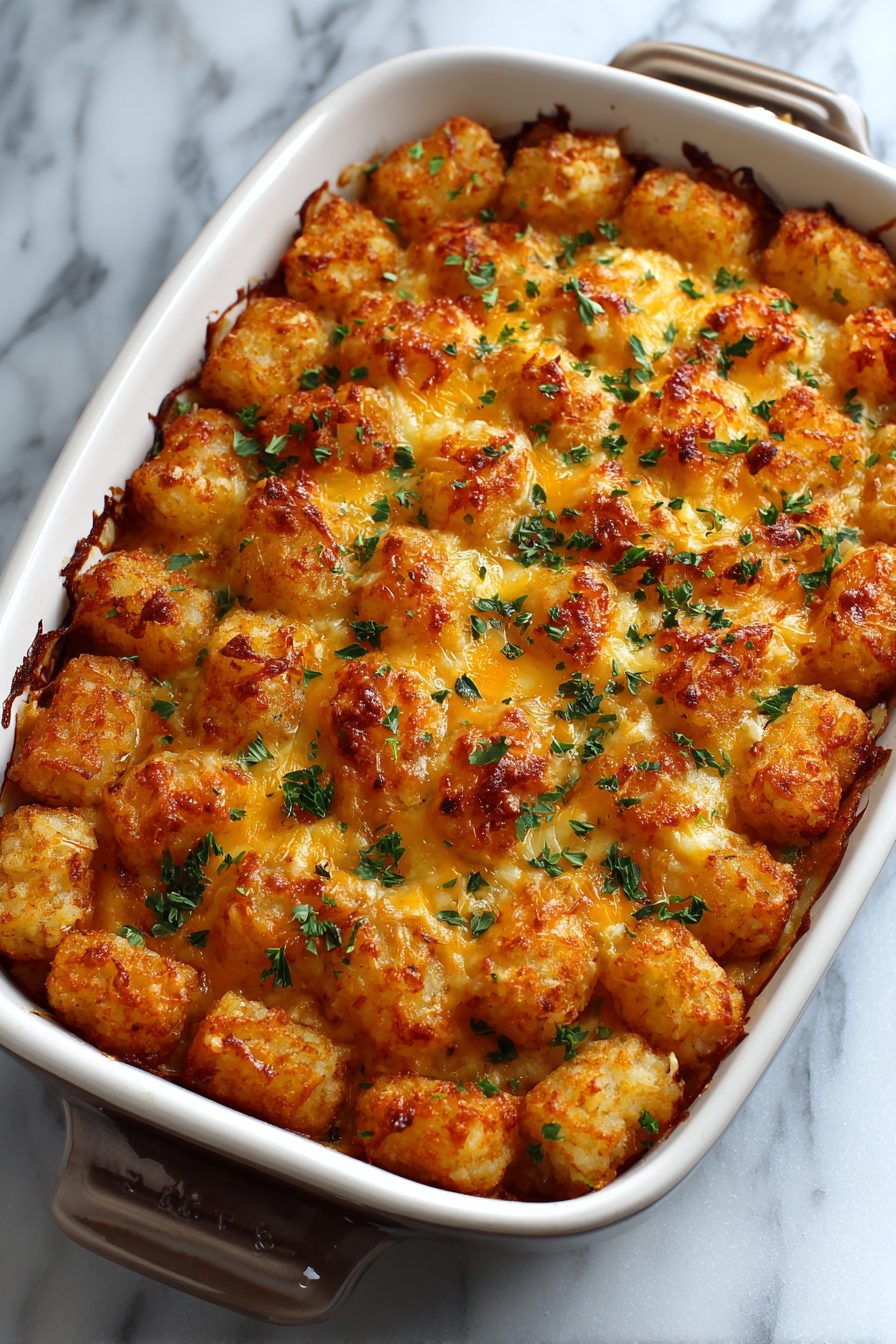 This recipe is an original creation inspired by classic Cheesy Tater Tot Casserole Recipe flavors. All ingredient ratios and instructions are independently developed.
