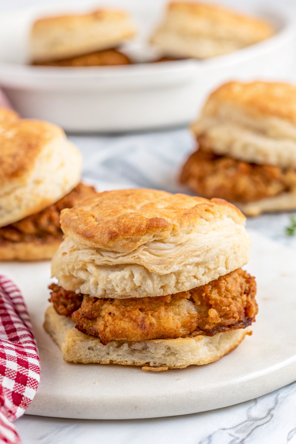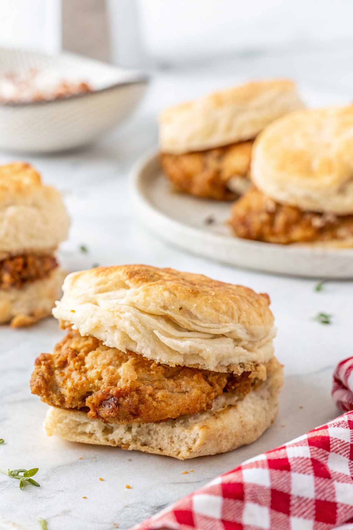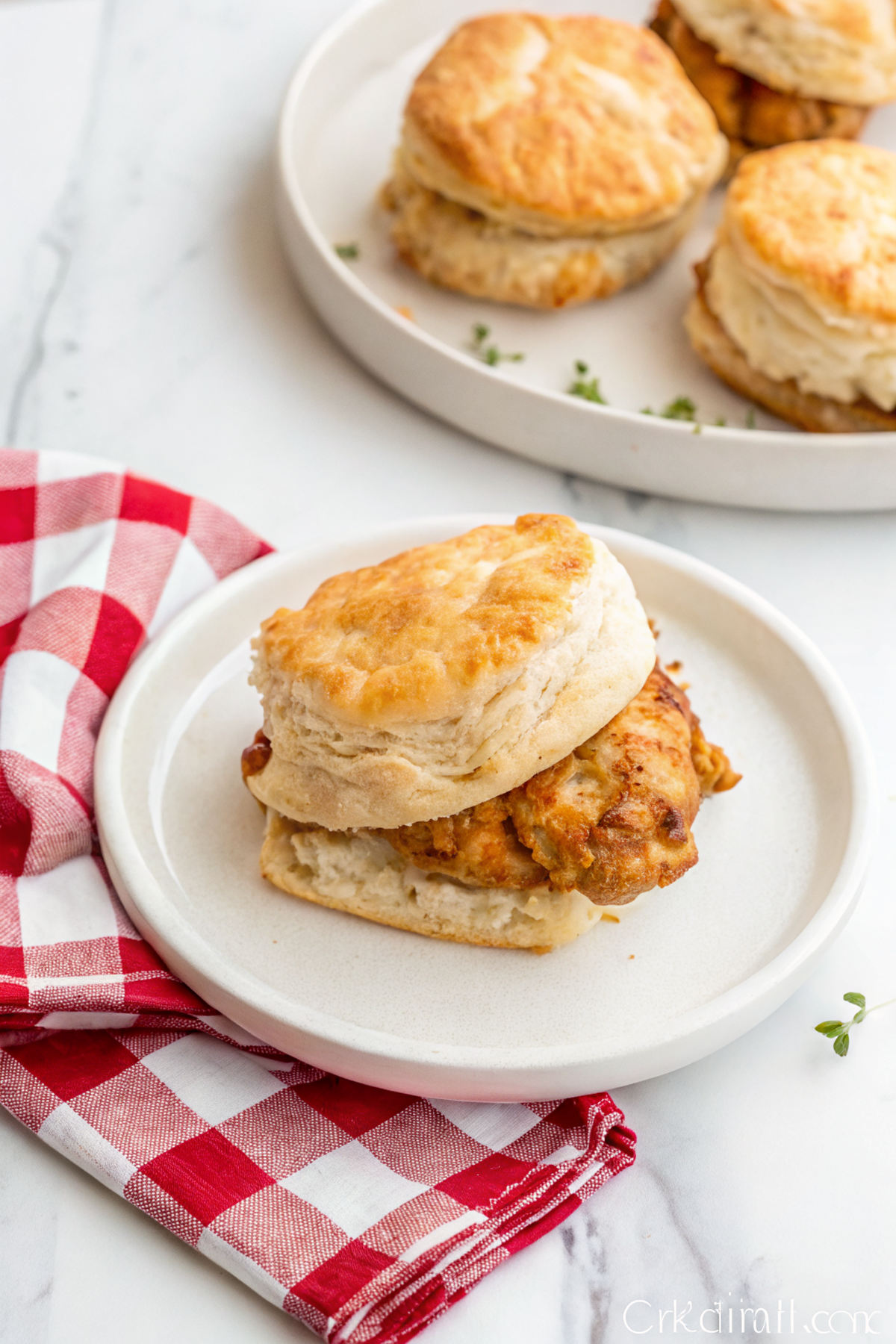 Leftovers keep in the fridge up to 3 days; store chicken and biscuits separately if you can. Reheat chicken in a 350°F oven or air fryer to re-crisp the coating — microwave will get you speed but limp crust. Cold? Sure, I’ve eaten them cold on road trips; the chicken is fine but butter and biscuit lose their magic — still delicious, no shame.