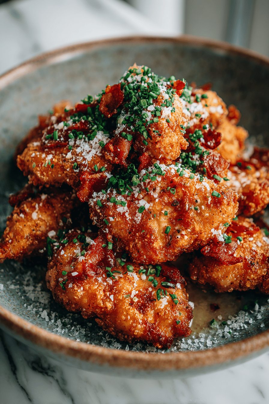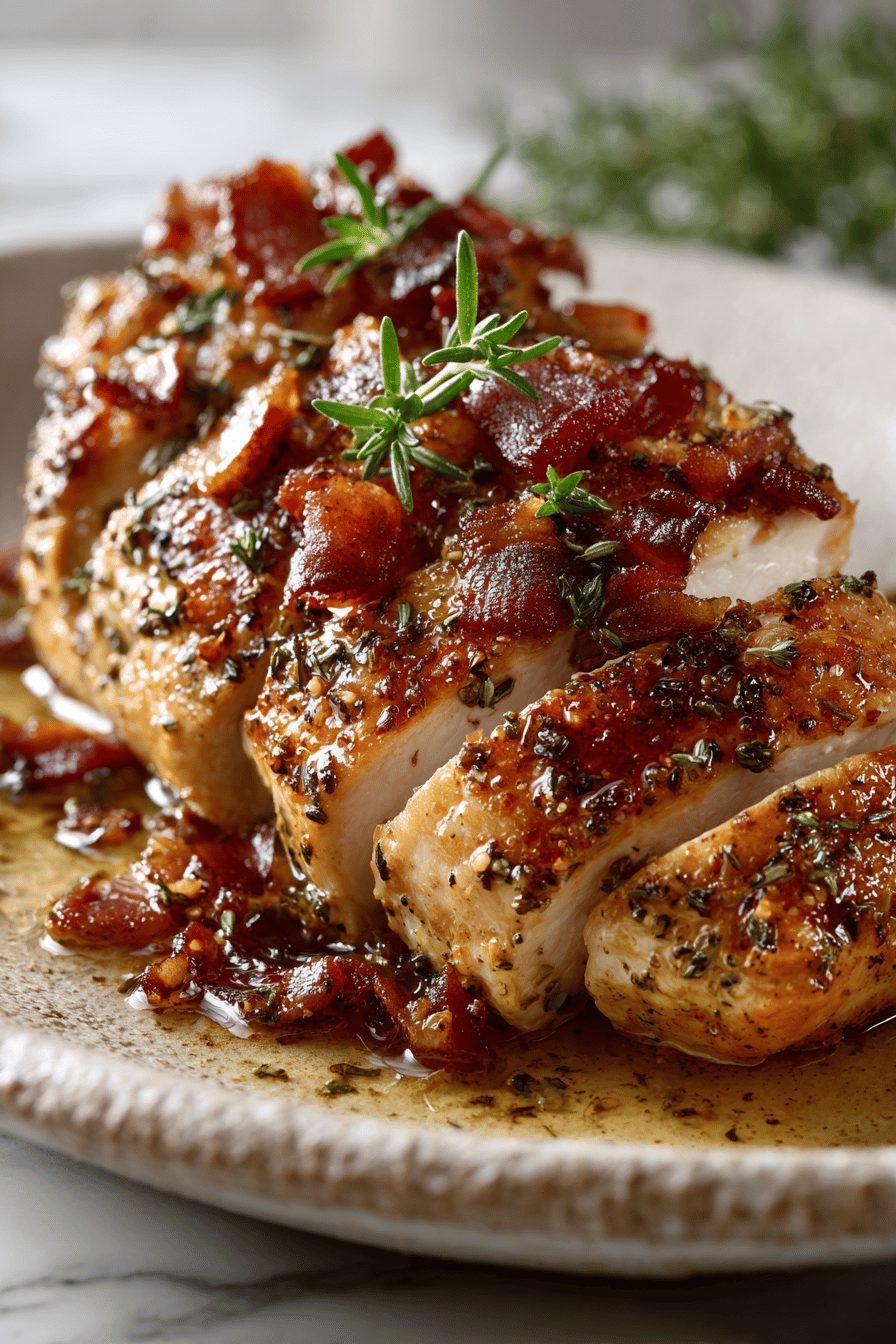 My husband calls this his “emergency celebration” dinner because he insists it’s worth popping a bottle of wine over, even if it’s a Tuesday. The kids devour the bacon first, then come back for the chicken, and suddenly the kitchen table looks like a tiny, joyful battlefield. I’ve burned the garlic once (of course), forgotten to drain a pan, swapped in turkey bacon when the store was empty, and it still came out cozy and perfect — which is why it’s a staple at our house.