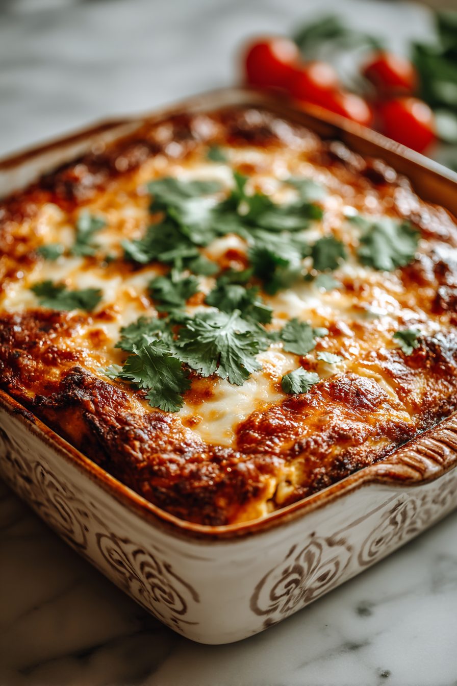 The first time I made this, I grabbed corn tortillas because that’s what was in the pantry, and the layers got a little “rustic.” Loved it. If you prefer a smoother, noodle-y vibe, flour tortillas get all soft and pudding-y in the best way. I’ve also been known to sneak in a thin smear of refried beans between layers—don’t go heavy or it overwhelms, but a whisper adds body and makes leftovers glorious. One night I used a smoky salsa and it tasted like I grilled the whole thing—10/10, would do again. Oh, and if your pan is a hair too full, slide a sheet pan under it in the oven unless you enjoy scrubbing cheese stalactites from the bottom rack. Learned that one the hard way.