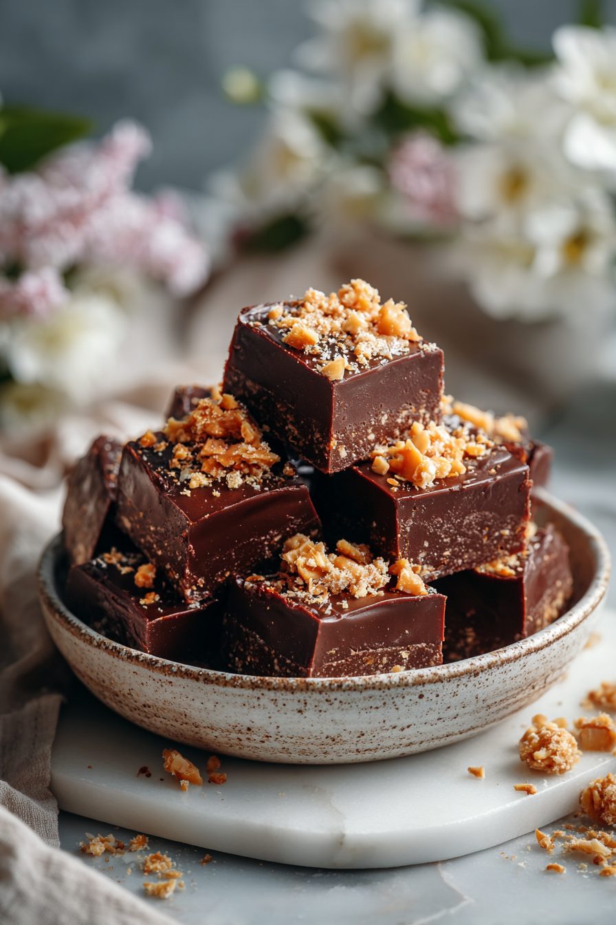– Textural heaven: silky, dense fudge + crunchy candy = perfect contrast.