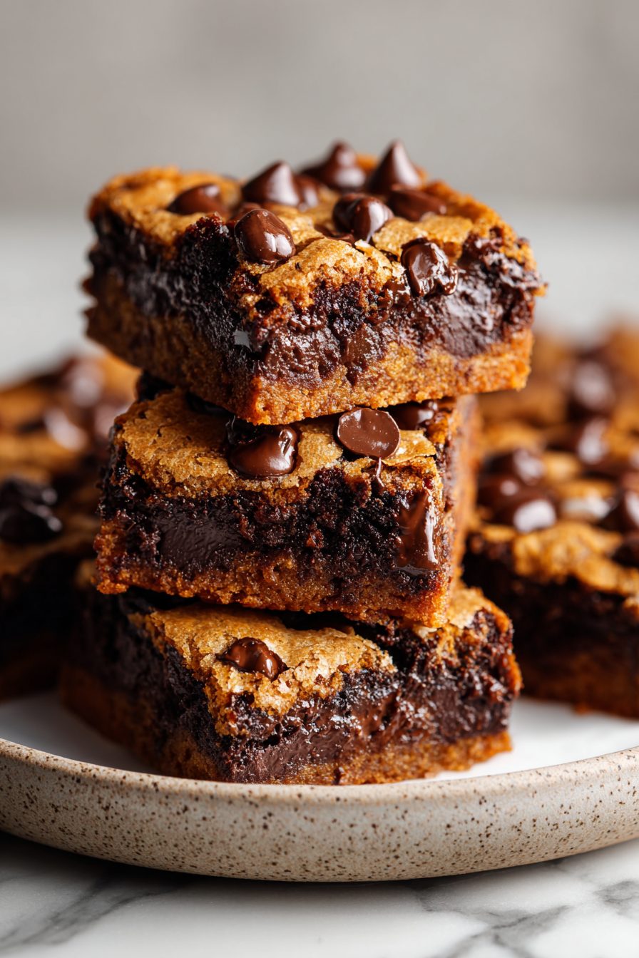 Keep leftovers in an airtight container at room temp for 2 days, or in the fridge for up to 5 days. I’ll never judge you for eating them cold — cold cookie-dough-brownie is a real breakfast mood. For longer stash, freeze individual squares wrapped tightly; thaw at room temp before serving so textures return.