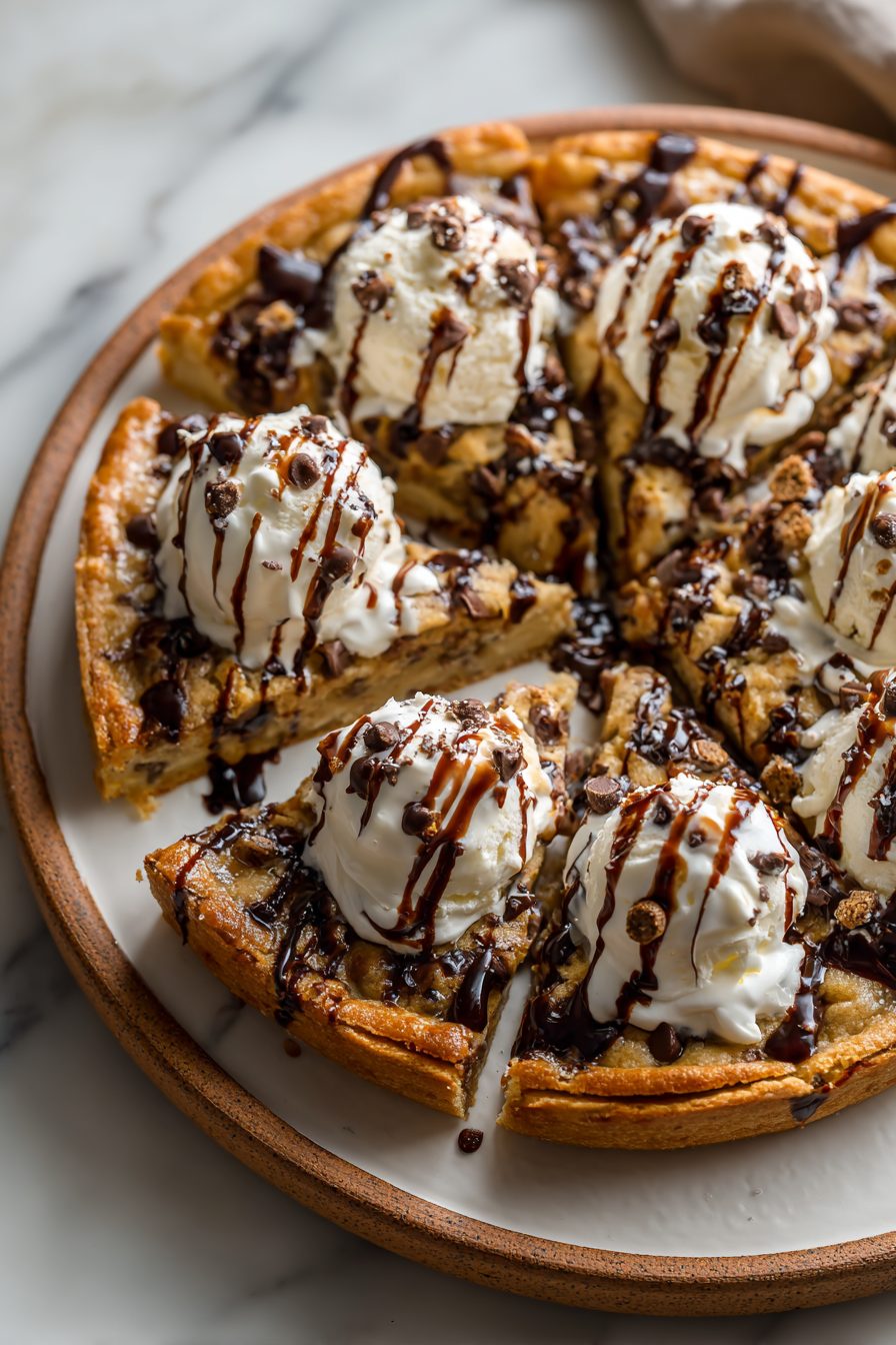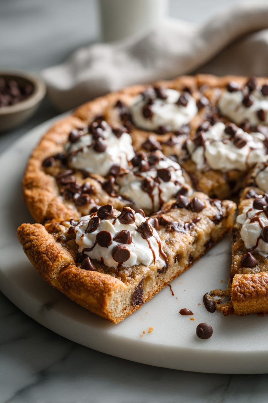 This giant, gooey Chocolate Chip Cookie Pizza is basically a cookie and a pizza having a messy, glorious baby. It’s a thick, soft cookie baked in a pizza pan, sliced into wedges, still-warm chocolate rivers, a sprinkle of flaky salt if you’re feeling fancy, and utterly zero judgment about eating it with your hands. It’s special because it hits that warm-baked nostalgia but feeds a small crowd without standing over the oven making dozen after dozen.