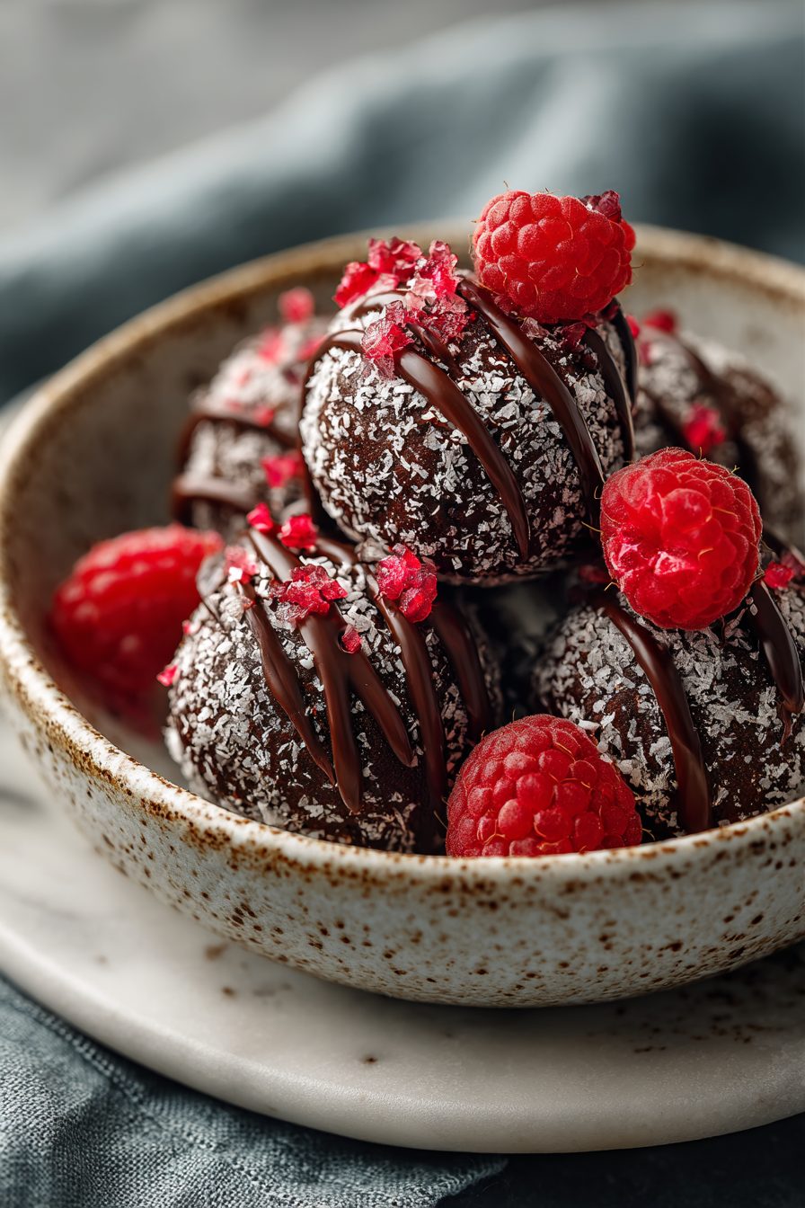 – Coatings: cocoa powder for classic, chopped nuts for crunch, shredded coconut for chew, or dip half in tempered chocolate for a shiny shell.