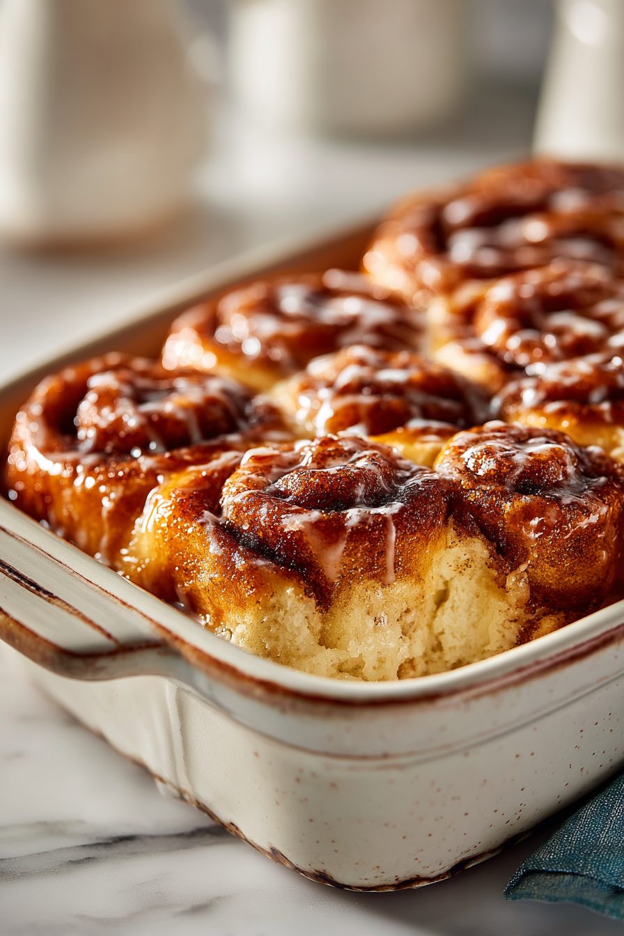 – Use canned cinnamon rolls for mega speed; unroll and chunk them into the dish instead of rolling from scratch.