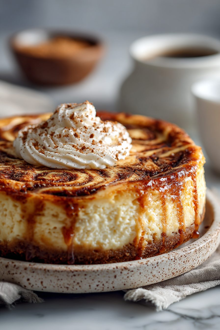 This mash-up of gooey cinnamon rolls and creamy cheesecake is exactly what happens when I decide to be reckless on a Sunday morning: all comfort, a little over-the-top, and totally worth the mess. It’s a cinnamon roll baked into a cheesecake — think swirly cinnamon centers rising out of a silky, tangy cheesecake base, finished with a slightly crusty top and a drizzle of sweet cream cheese glaze. It’s showy enough for guests but forgiving enough for a sleepy weekday breakfast (or, let’s be honest, an after-dinner treat with coffee).