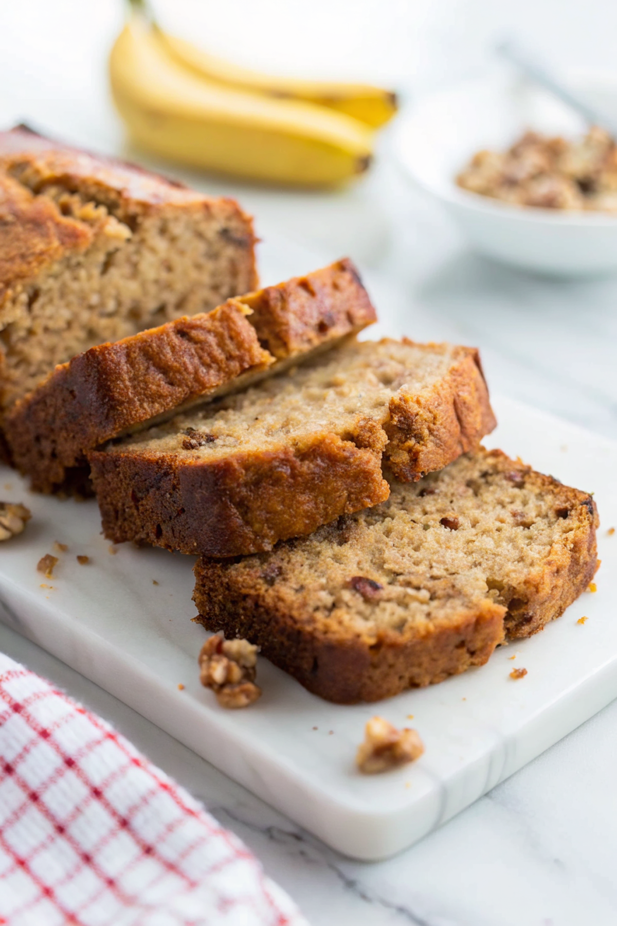 I always underestimate how fast this smells up the house. One loaf and the whole neighborhood gets jealous. I once tried swapping all the sugar for honey because I was “being healthy” — it made the top brown like it was tanning — still tasted great, but the texture shifted. Also, if you’re a nut person, toss them in last and don’t over-toast them in the pan unless you want immediate tiny charred regret. My trick: mash the bananas with a fork in the measuring cup so you don’t have to wash an extra bowl.