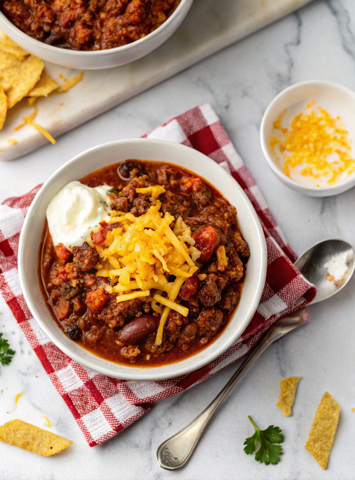 My husband practically does a little happy dance when I pull this out. Not kidding — he’ll clear the table like a garbage disposal and taste-test every spoonful, declaring whether it needs more hot sauce (it usually does). We’ve served this to picky cousins, hungover friends, and on lazy Sundays, and it’s become our go-to for feeding a crowd without stressing. Once, I accidentally left the chili simmering a little too long and it turned into something unbelievably cozy — thicker, deeper, and the husband announced it tasted like a hug. Ever since, a “too-long” simmer is kind of my secret weapon.