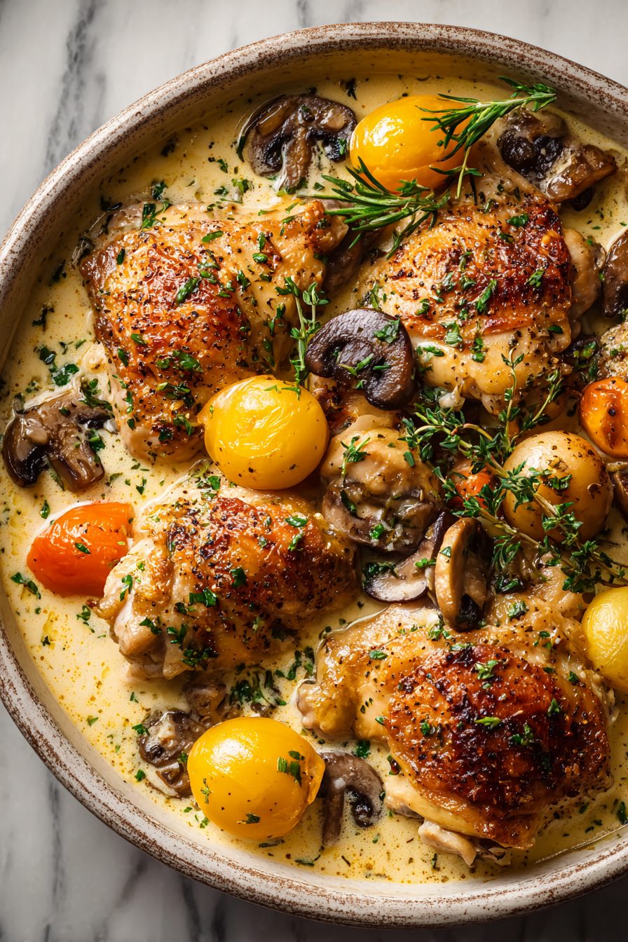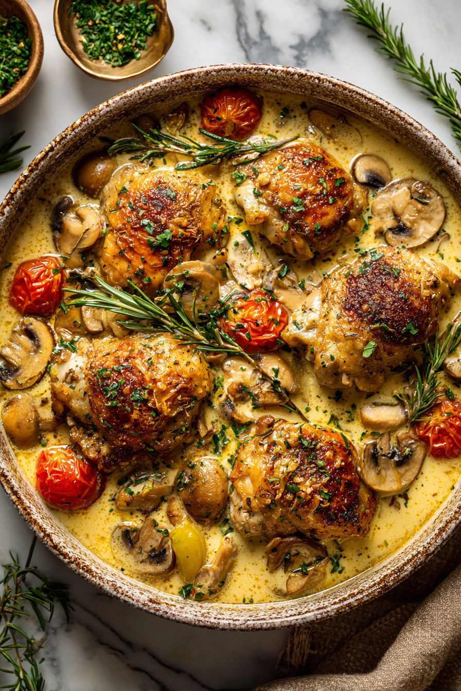 – Use boneless thighs if you’re rushed — they brown faster and shave off 10–15 minutes of cook time.