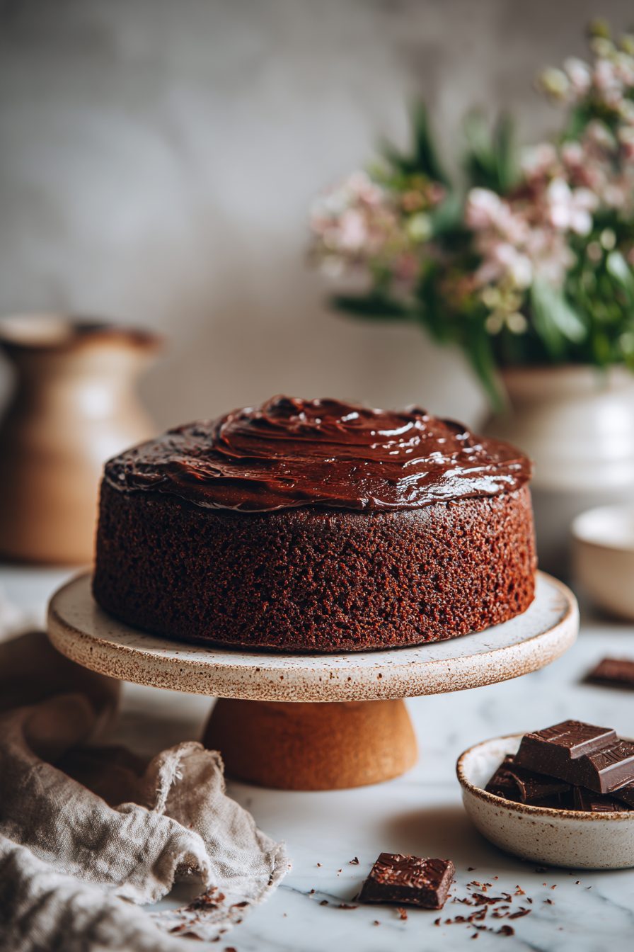 This cake is the lazy, perfect kind of chocolate cake — deep, fudgy, and forgiving. It’s the one I turn to when I need something that feels fancy but doesn’t require a chemistry degree. Think moist layers, a glossy chocolate frosting that hides a dozen kitchen sins, and a recipe that behaves even when I’m distracted by dogs, kids, or a random text thread.