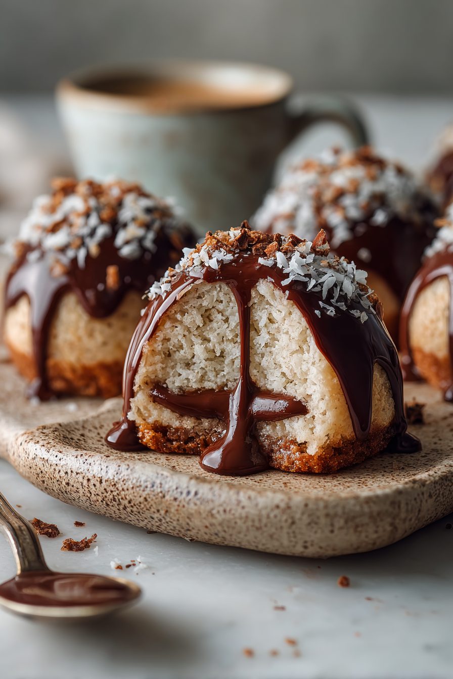 – The textures — crunchy chocolate shell, creamy coconut mousse, and toasted coconut — are a tiny party in every bite.