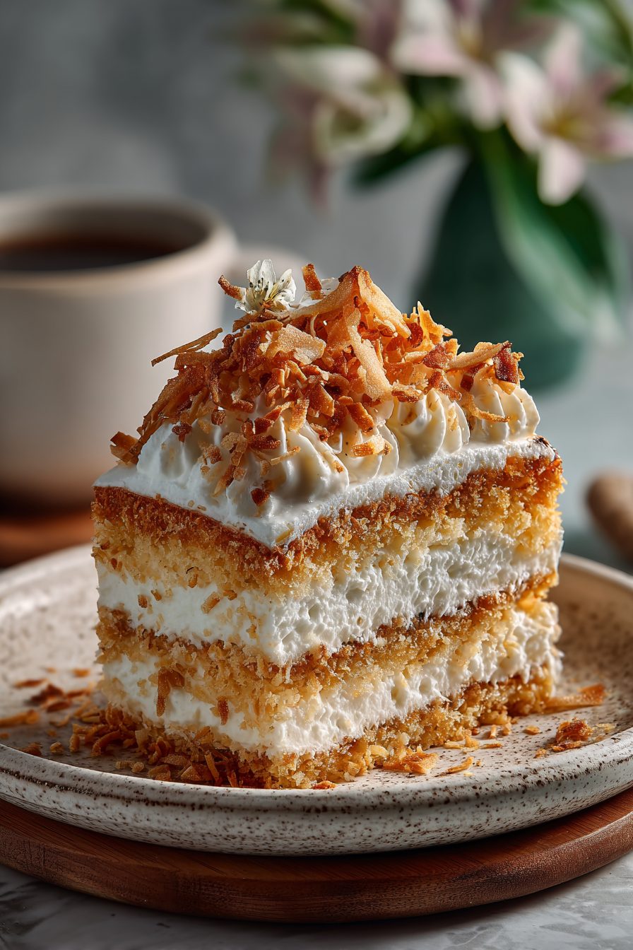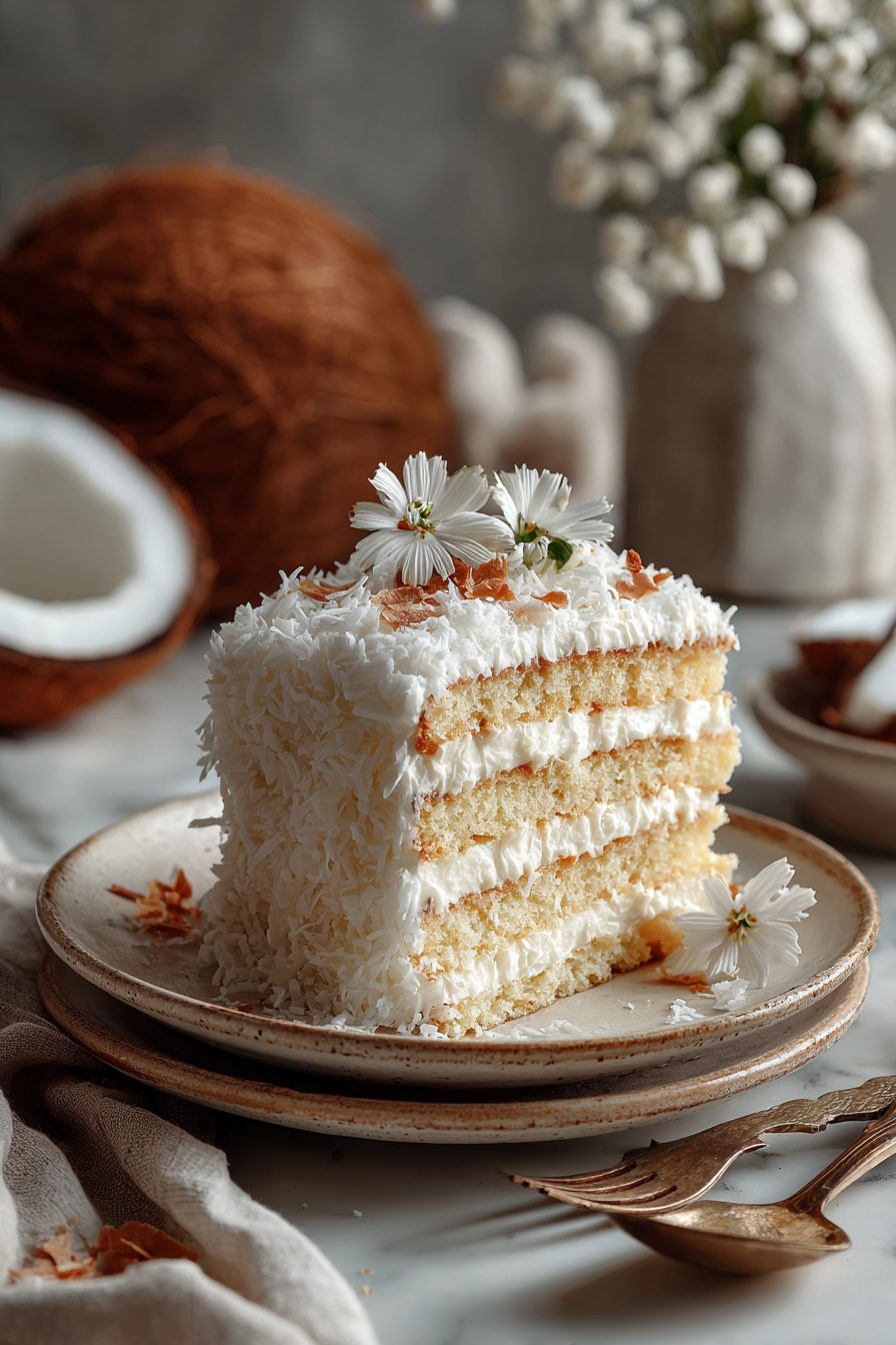 I’m not gonna lie — this cake is my kind of trouble: layers of tender coconut cake, silky coconut cream between them, and a little chewy toasted coconut on top. It’s cozy, a little messy to eat, and it makes the whole kitchen smell like tropical vacation (but with laundry and email in the background). If you like coconut in all its forms — shredded, creamy, and a touch boozy if you dare — this one will curl your toes.
