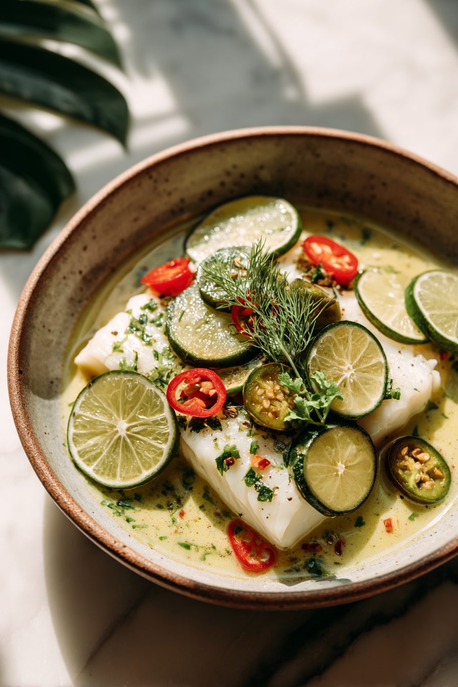 This recipe taught me to trust a gentle simmer and stop poking the fish every 30 seconds. I once cranked the heat to hurry things along and ended up with papery edges and disappointed faces—lesson learned. Also, fresh lime zest is worth the tiny extra effort; it gives a lift that bottled lime juice can’t touch. One time I tossed in some sliced bell pepper because we had extras, and it actually made the dish prettier and sweeter — happy accident.