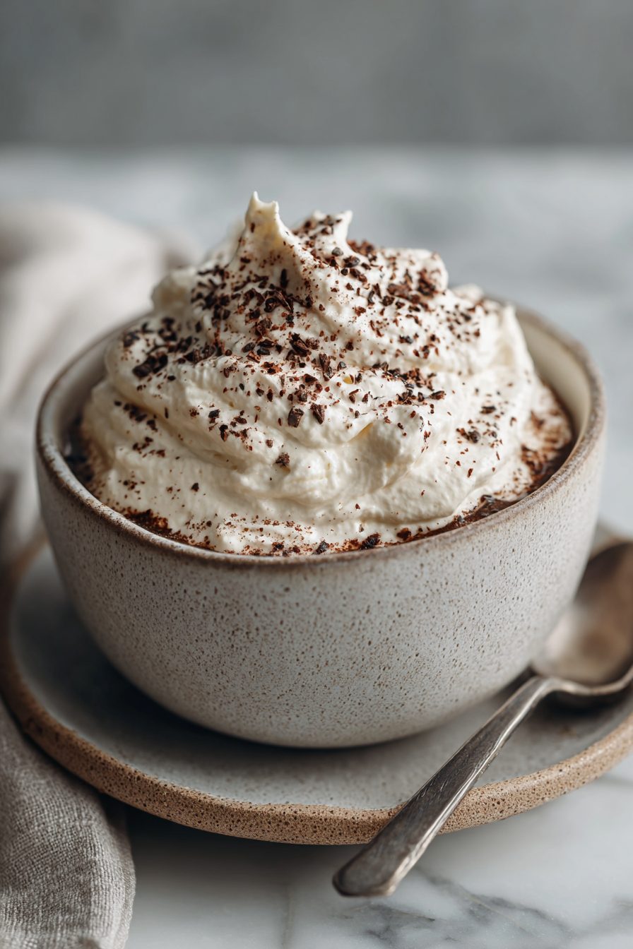 My husband calls it “the magic hat” because he insists it makes every mug or slice of cake vanish faster. The kids think the tiny coffee-sparkles are fairy dust. Once, I showed up with big plans for dinner and forgot dessert; five minutes later I whipped this up, slapped it on a bowl of store-bought brownies, and we ate them with forks on the couch while pretending the movie was the main event. It’s become our go-to emergency party trick and the thing I make when I want to feel like a kitchen wizard without trying too hard.