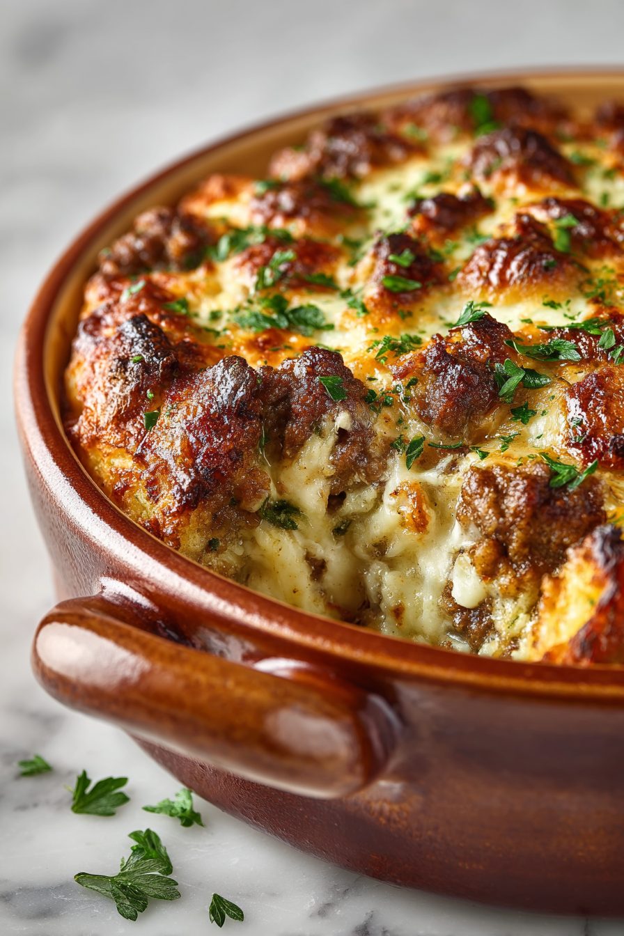 This casserole is the cozy, mashed-potato-topped cousin of meatloaf — all the juicy, spiced ground meat goodness tucked under a blanket of buttery mashed potatoes, baked until the edges are gloriously crisp. It’s the kind of dish that shows up when you want comfort but also something that feeds a small army and still reheats like a champ. Think hearty weeknight dinner that doubles as lunch the next day (and yes, breakfast if you’re into cold comfort-food vibes).