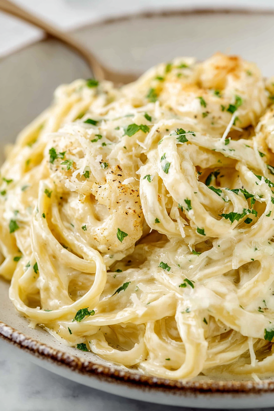 This is the kind of comfort-food hug that sneaks up on you — silky, garlicky fettuccine smothered in a ridiculously creamy Alfredo sauce that tastes like Olive Garden but made in your own crowded kitchen. It’s simple ingredients done right: butter, cream, parmesan, a little pasta water magic — nothing scary, just very comforting and very indulgent. If you love rich, cozy pasta that feels like a treat and not a science experiment, this is for you.