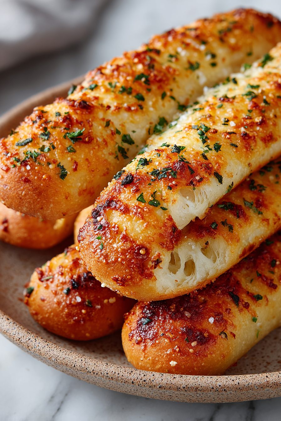 Soft, buttery breadsticks coated in garlicky herb seasoning and Parmesan—just like your favorite pizzeria. Perfect for dunking in warm marinara.
