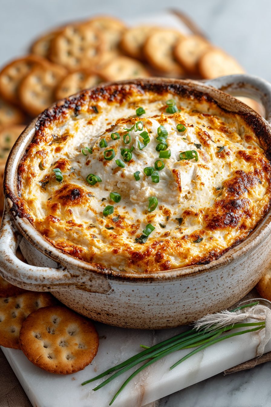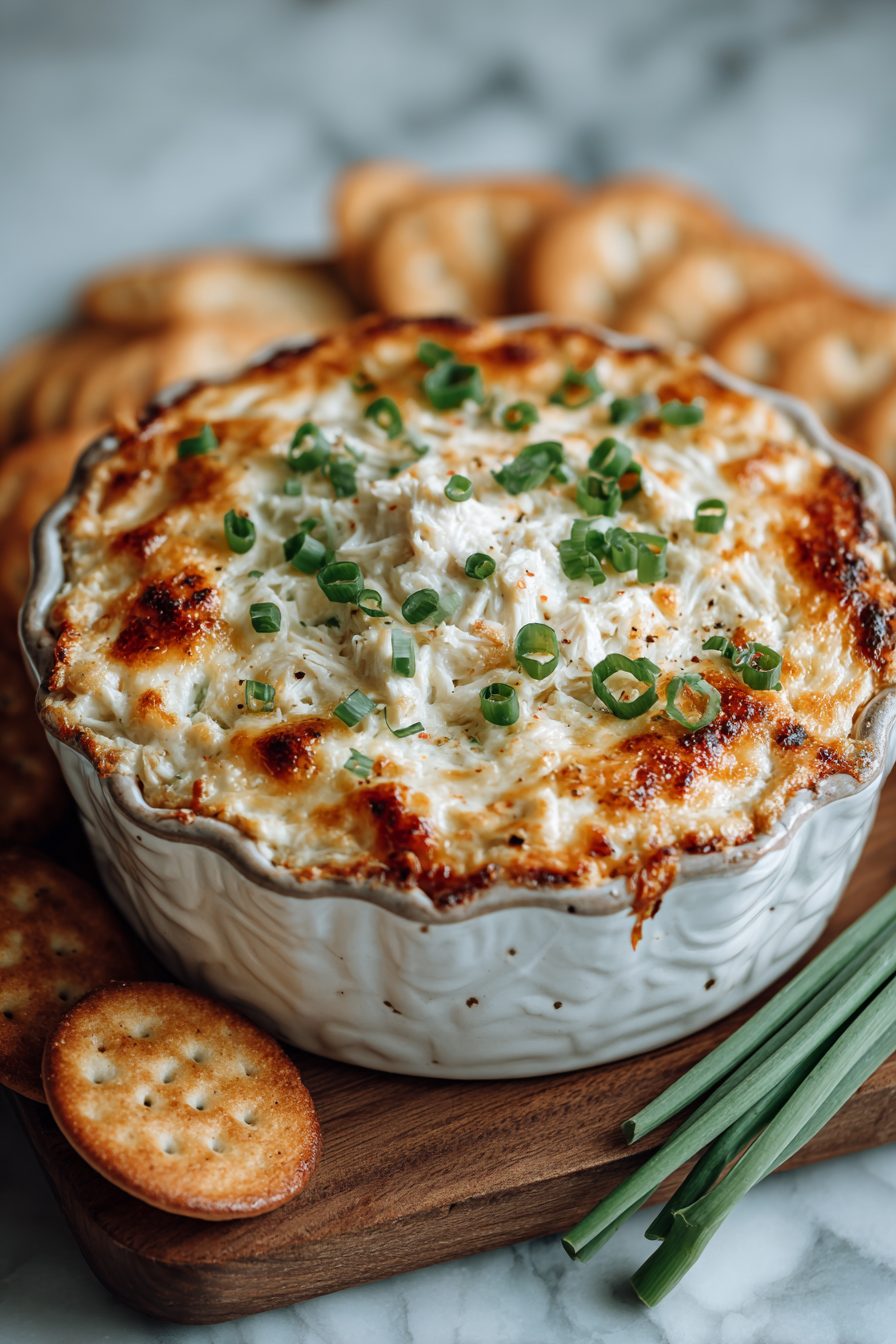 This dip is everything your snack-craving brain wants: tangy cream cheese, flaky crab, a little garlic, green onion, and a crunchy vehicle for scooping. It’s essentially crab rangoon without the time-consuming wrapping and folding—baked, bubbly, and slightly dangerous in quantity.