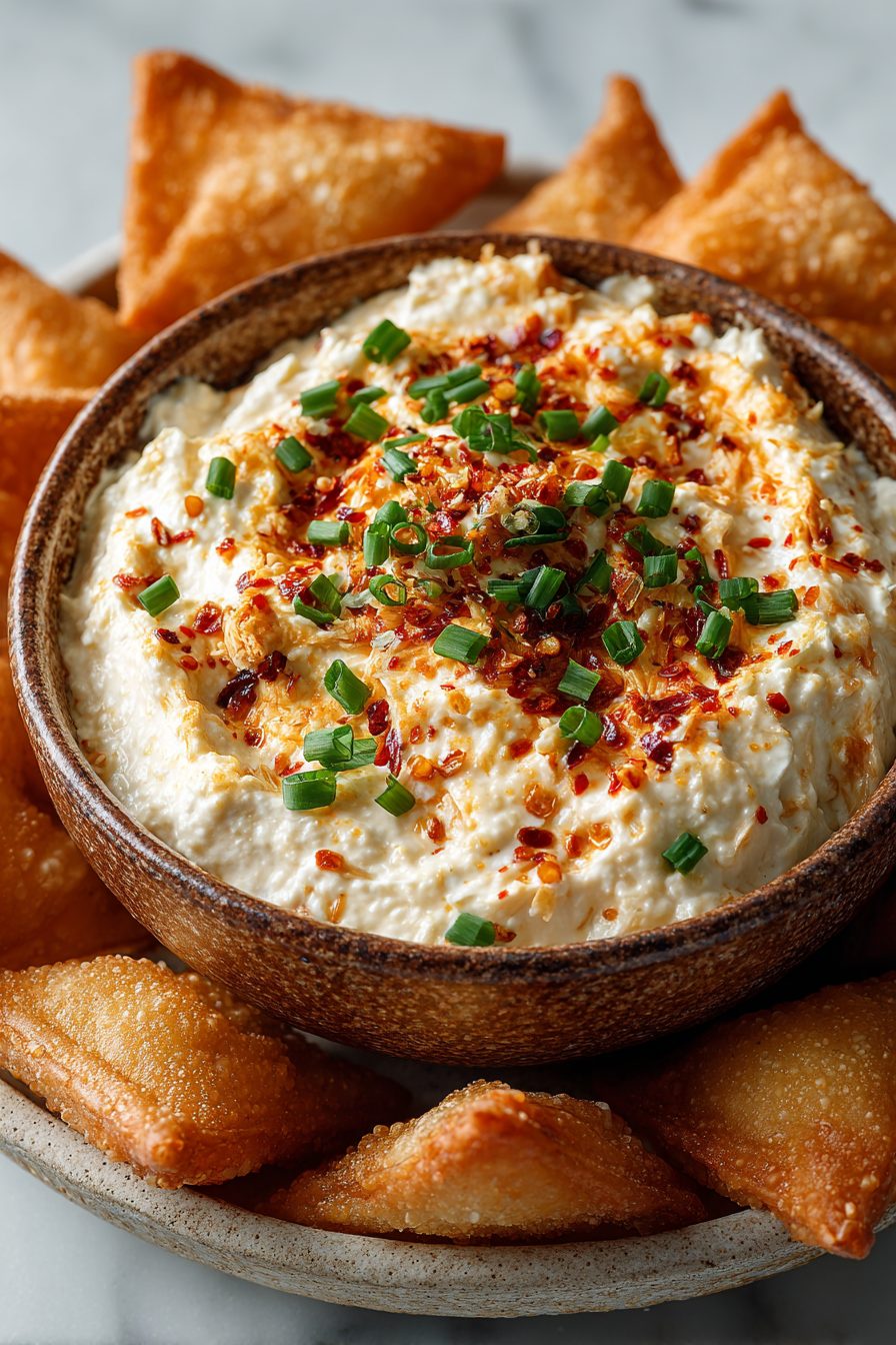 – Crunch Extras: Wonton wrappers, pita chips, or sturdy kettle chips all work; choose something with a good bite so it won’t flop in the dip.