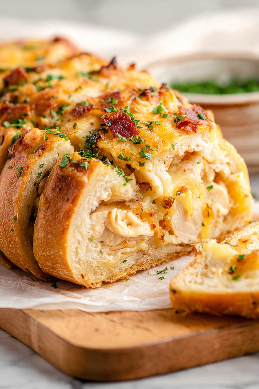 This is the kind of ridiculous, comforting, slightly dangerous food I make when I want everyone to stop talking about their phones and start licking their fingers: Crack Chicken Bread. Imagine a soft, cheesy, ranch-spiked chicken filling stuffed into a loaf or spread across a tear-and-share bread — melty, bacon-studded, and utterly negotiable with a napkin. It’s not fancy. It’s gloriously messy and impossible not to pass around.