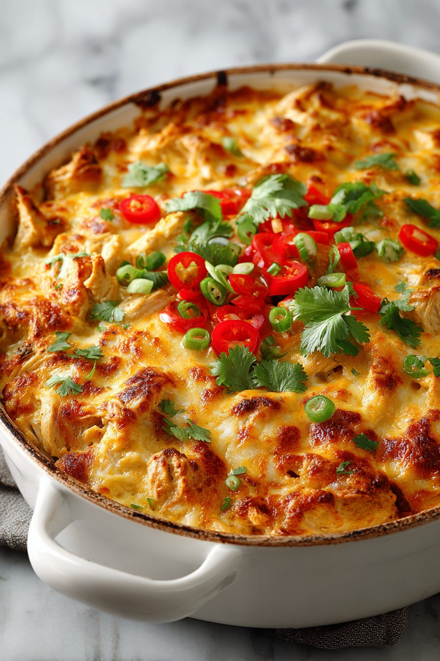 This casserole is what happens when fajita night and comfort food have a messy, brilliant baby — all the charred peppers, tender shredded chicken, melty cheese, and a creamy, tangy sauce baked until bubbly and a little browned on top. It’s weekend-warmth in a 9×13, and honestly, it makes dinner feel like a hug and cheat day rolled into one. Try it because it’s easy enough for weeknights, impressive enough for friends, and forgiving when you forget to preheat the oven.