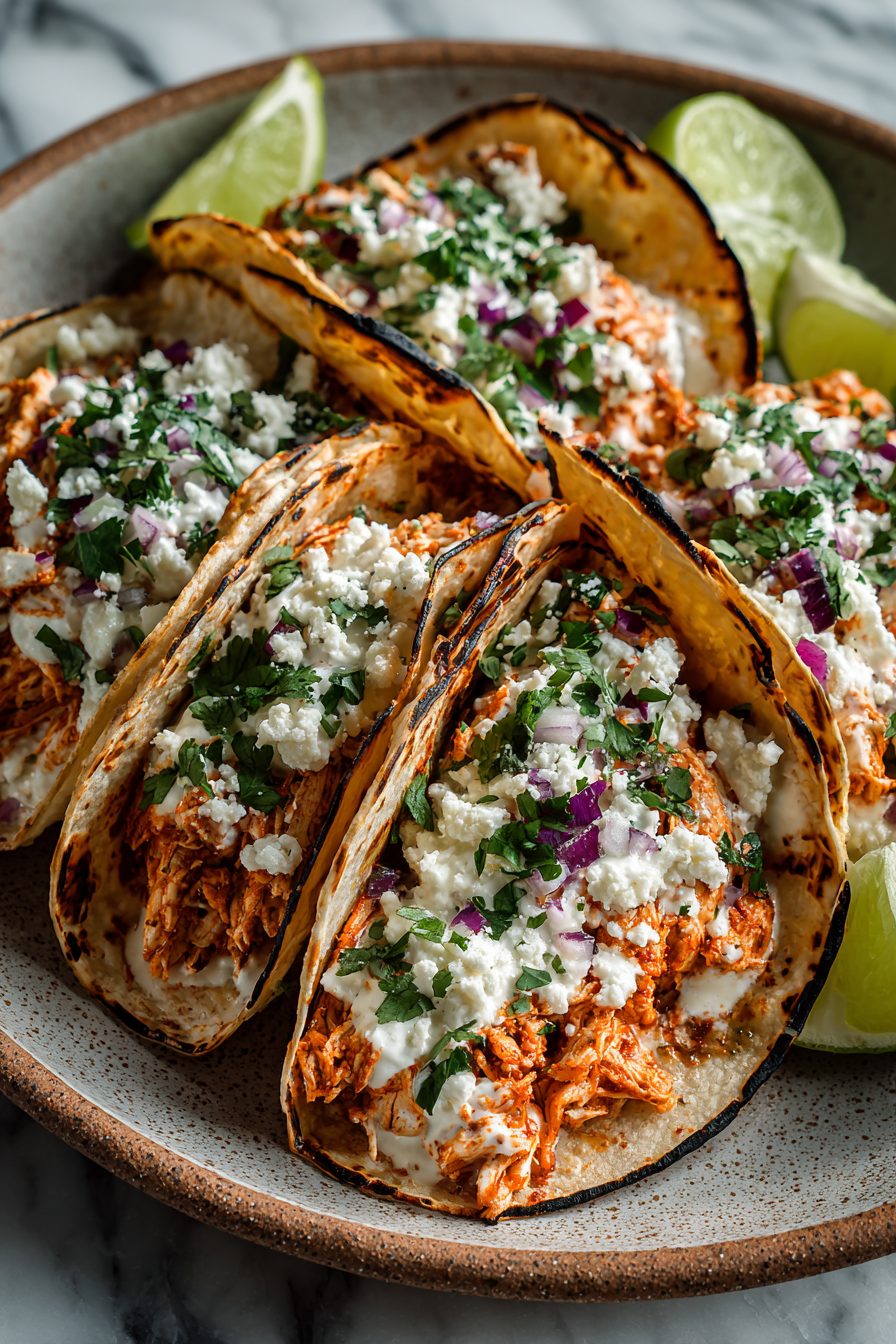 These creamy chicken tacos are saucy, tangy, and loaded with tender shredded chicken. Perfect for busy weeknights and crowd-pleasing dinners.