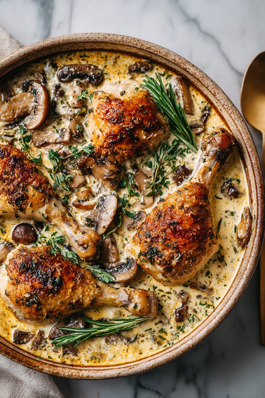 This recipe is an original creation inspired by classic Creamy Mushroom Chicken Legs flavors. All ingredient ratios and instructions are independently developed.