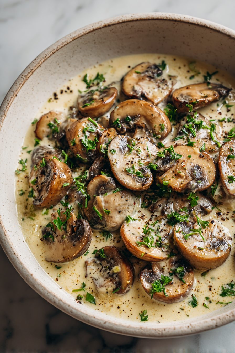 – Simple-ish ingredients, big payoff: butter, garlic, mushrooms, a splash of stock, and a tangy creamy finish.