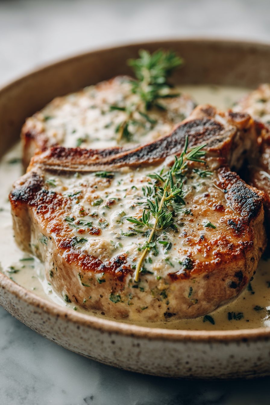 - Serve chops with the creamy sauce and sprinkle with parsley.