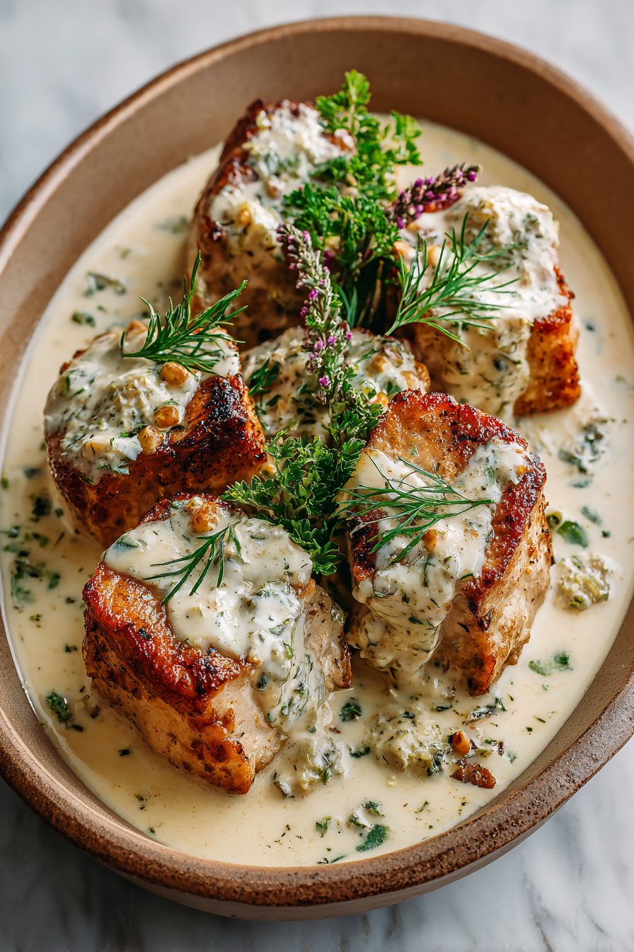 Swap pork for boneless chicken thighs if that’s what’s in your fridge — cook time is similar but check for doneness. Use Greek yogurt for a lighter sauce but fold it in off the heat. Add a tablespoon of Dijon for a tangier edge, or stir in a little shredded cheddar for a cheesier sauce. If you hate ranch packets, make your own blend with dried dill, parsley, garlic powder, onion powder, and salt.